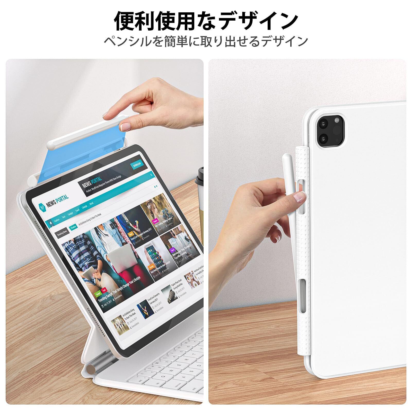 GOOJODOQ アップルペンシル適用iPad ペンホルダー マジックキーボード対応 Pencil ホルダー 収納 ペンシルホルダー 軽量 薄型 保護 紛失防止 ホワイト