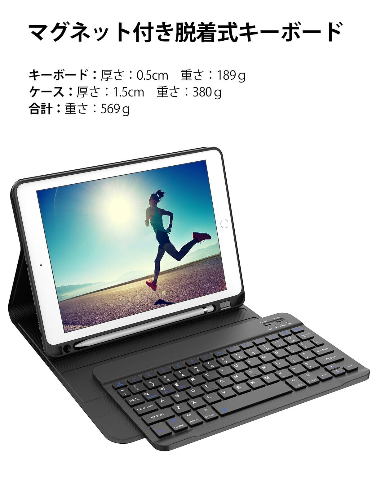 【自動スリープ機能&Apple pencil収納可能】 ipad 10.2 キーボード付きケース はマグネット内蔵、ケースとワイヤレスキーボードがしっかり吸っています、ごiPadとキーボードに保護するできます。オートスリープ機能付き、ケースの開閉でiPadを自動的にスリープ・起動させるオートスリープ機能付いています。Apple pencil用のホルダーとアダプタースロットが付きますので、アップルペンシルに最大性の保護を提供して、簡単に持ち運ぶことができます。