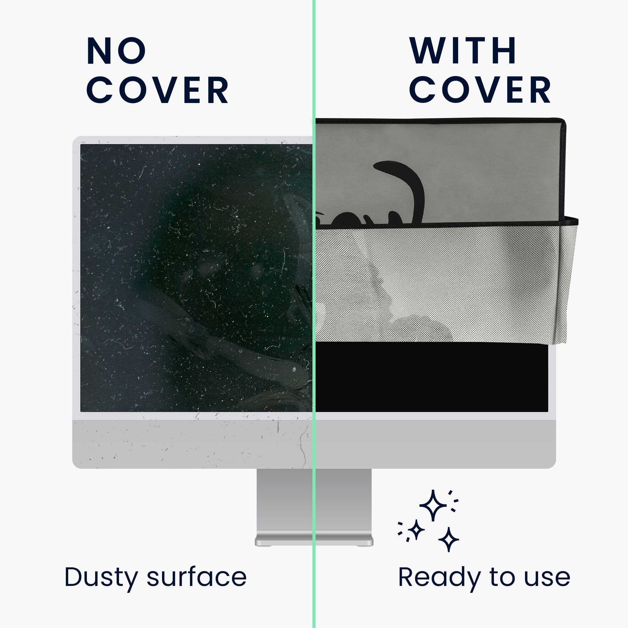 ホコリ防止 PCカバー!: このパソコンモニターのための画面カバーが、あなたの大切なモニターをほこり、指紋、紫外線や汚れなどからしっかりと守ります。お気に入りの4kモニター、ゲーム用モニターを長く使用していただくために。色移りや汚れた場合は、湿らせた布で拭くことができます。