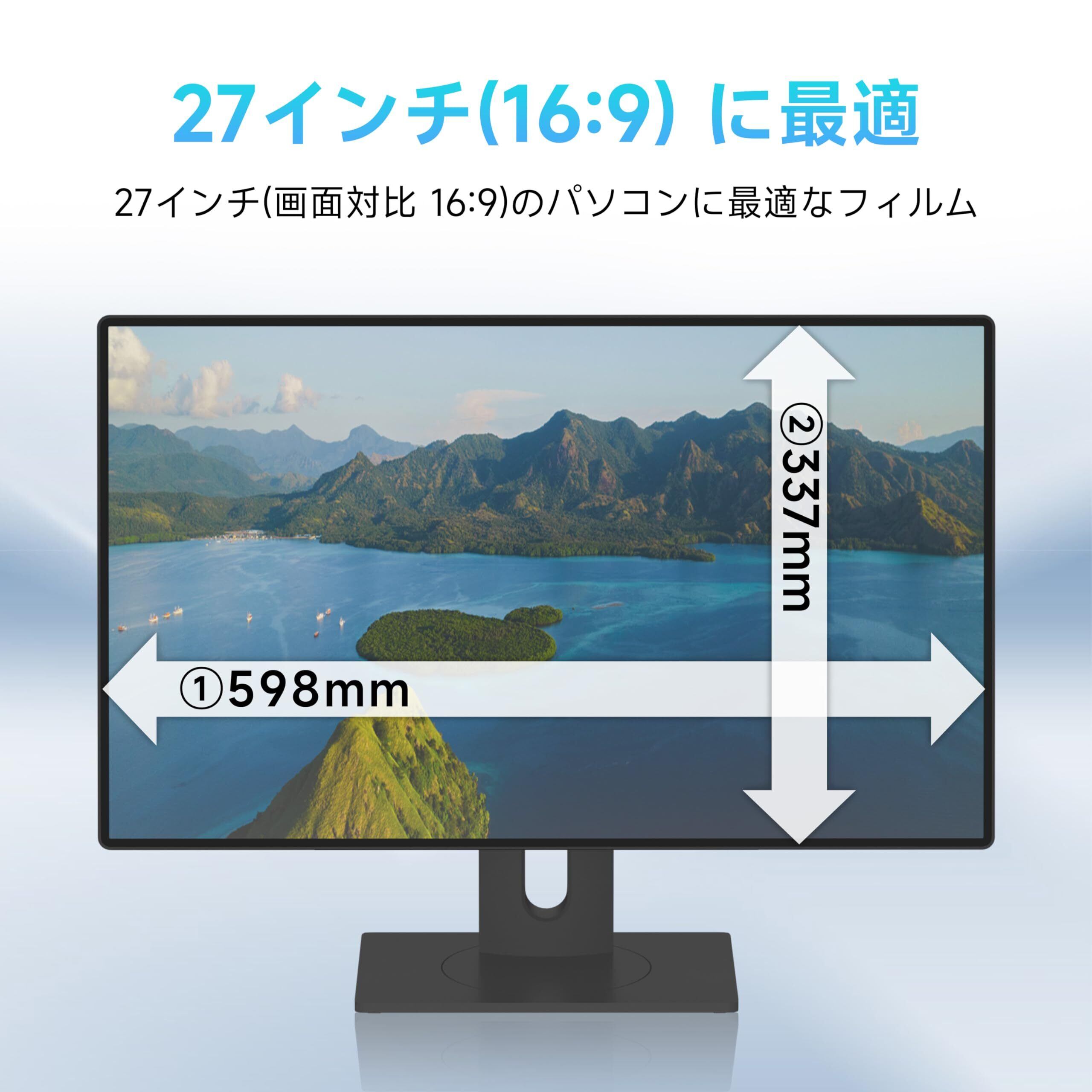 【数量限定】27インチ 16:9 用 液晶 保護フィルム アンチグレア 反射防止 指紋防止 見やすく目に優しい フィルム パソコン ブルーライトカット フィルム 高透過率 日本素材 抗菌フィルム