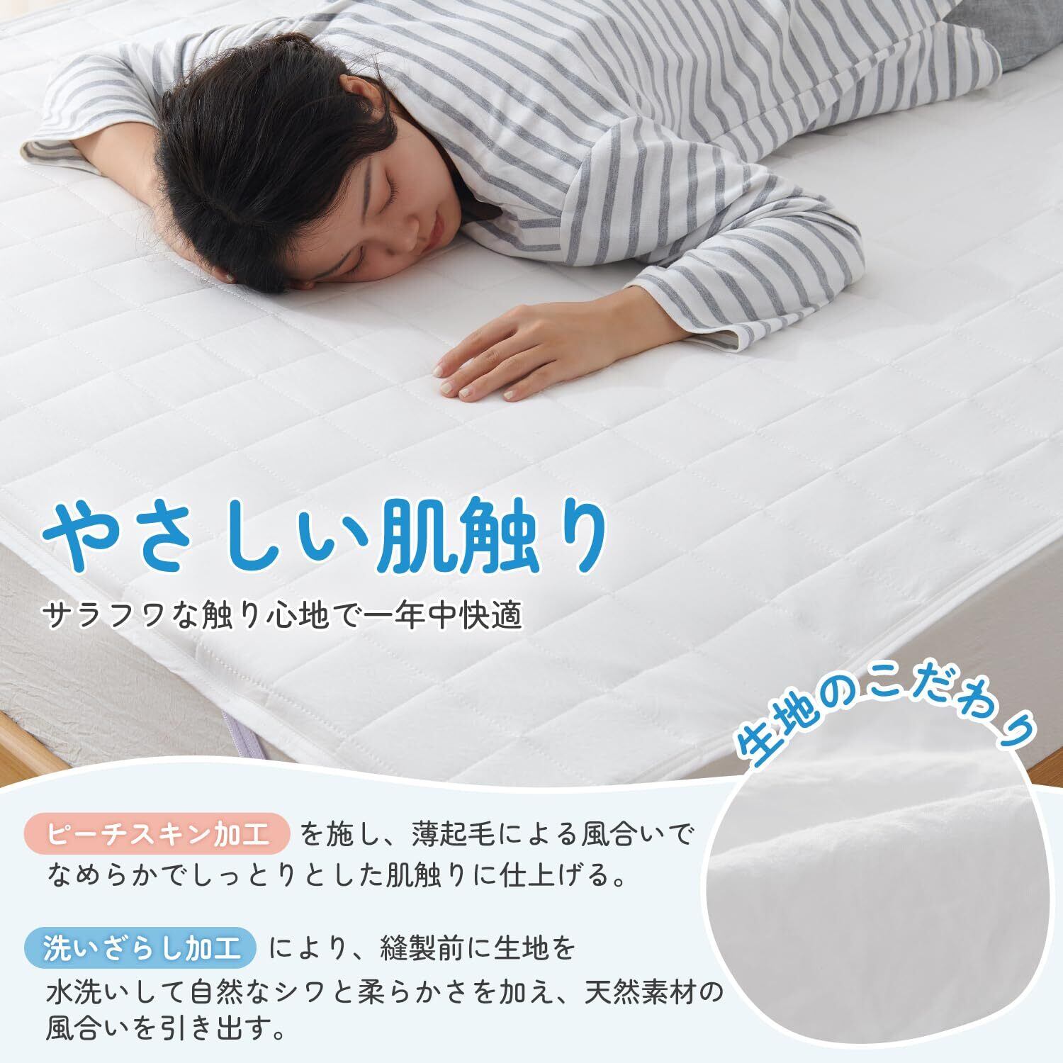 【優しい肌触り】表面はソフトで気持ちいいピーチ生地で、洗いざらし加工により、自然なシワと柔らかさを加え、天然素材の風合いを引き出し、サラサラした触り心地で一年中快適。防水機能・抗菌防臭機能・ダニ対策と機能もしっかりから、肌の弱い方、敏感肌の方も安心してお使いいただけます。