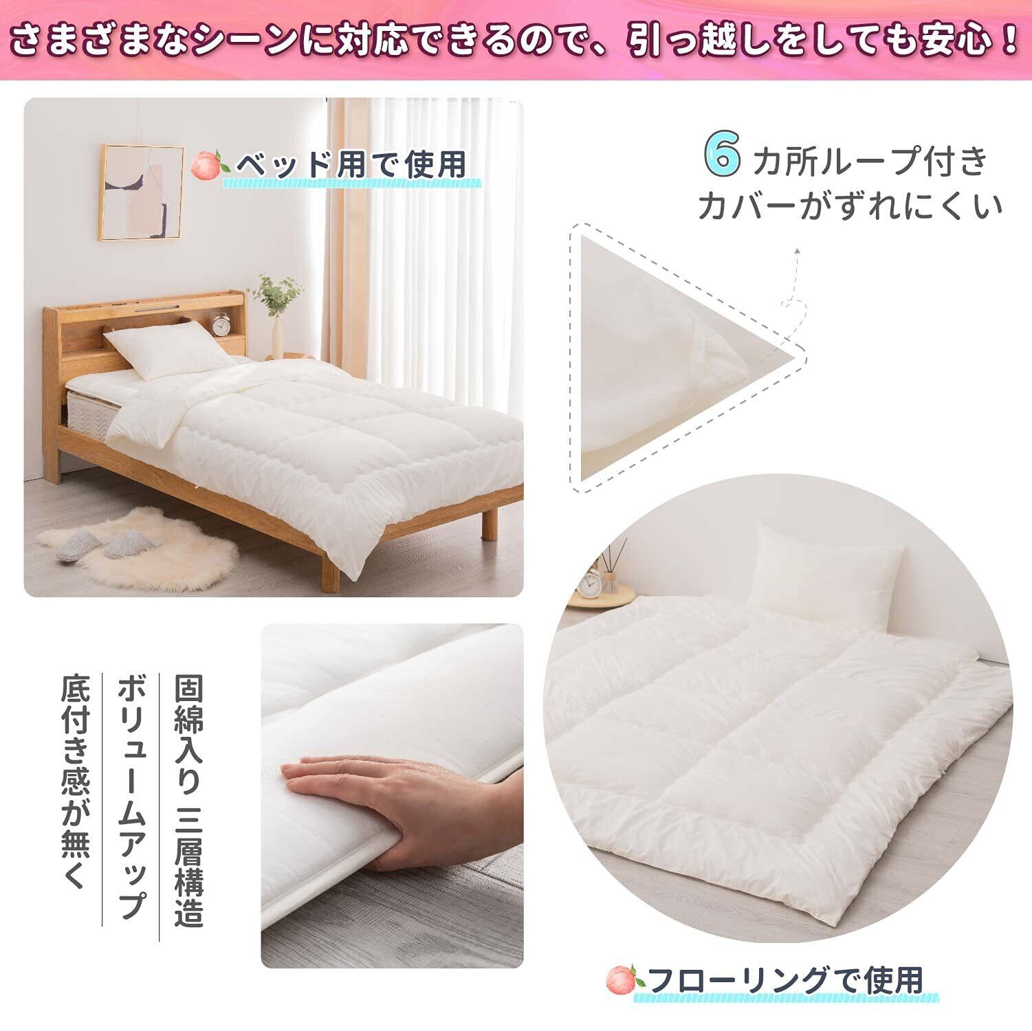 【機能性抜群】上質なバージン綿がたっぷり、ふわふわ暖かく、型崩れにくい。ピーチスキン加工生地を採用、肌触りが素晴らしい。またキルティング加工で耐久性に優れ、ほこりが出にくい。軽量設定なので全然圧迫感がなく、寝心地抜群。抗菌防臭加工、ご安心に選択ください。