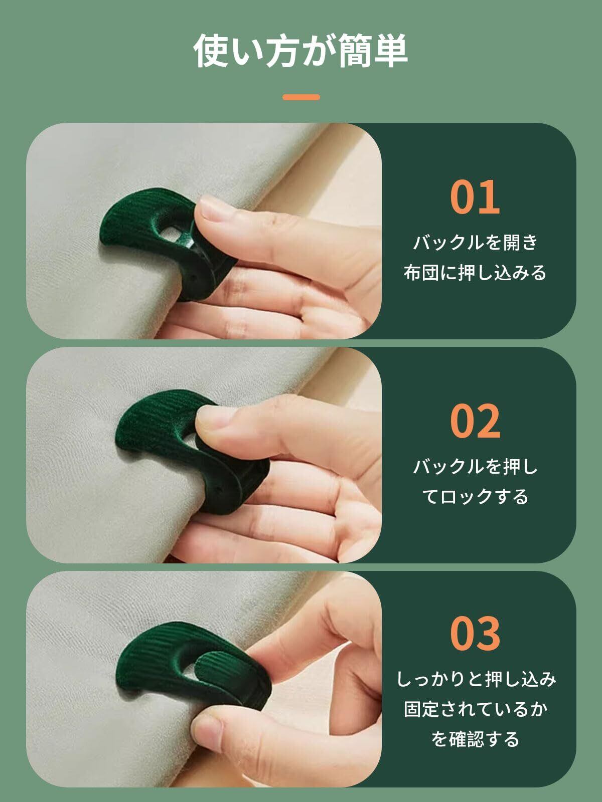 【操作簡単】ロックバックルを開き、固定クリップを布団に通し、ロックバックルを押して最後までスライドさせて確実に固定します。 使用と設置が簡単で、季節を問わず使用できます。
