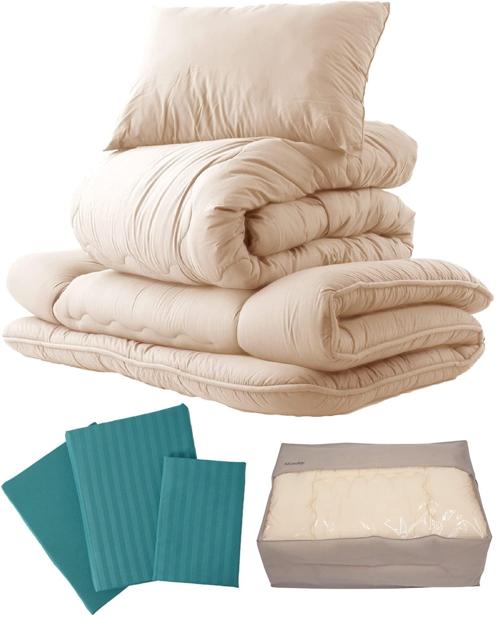 AQUA (アクア) ナイスデイ 布団セット 7点 セミダブル ロング 210cm [ 来客用 掛布団 敷布団 ほこりの出にくい 3層固綿入 枕 収納袋 カバー ] ブルーグリーン 608802T5