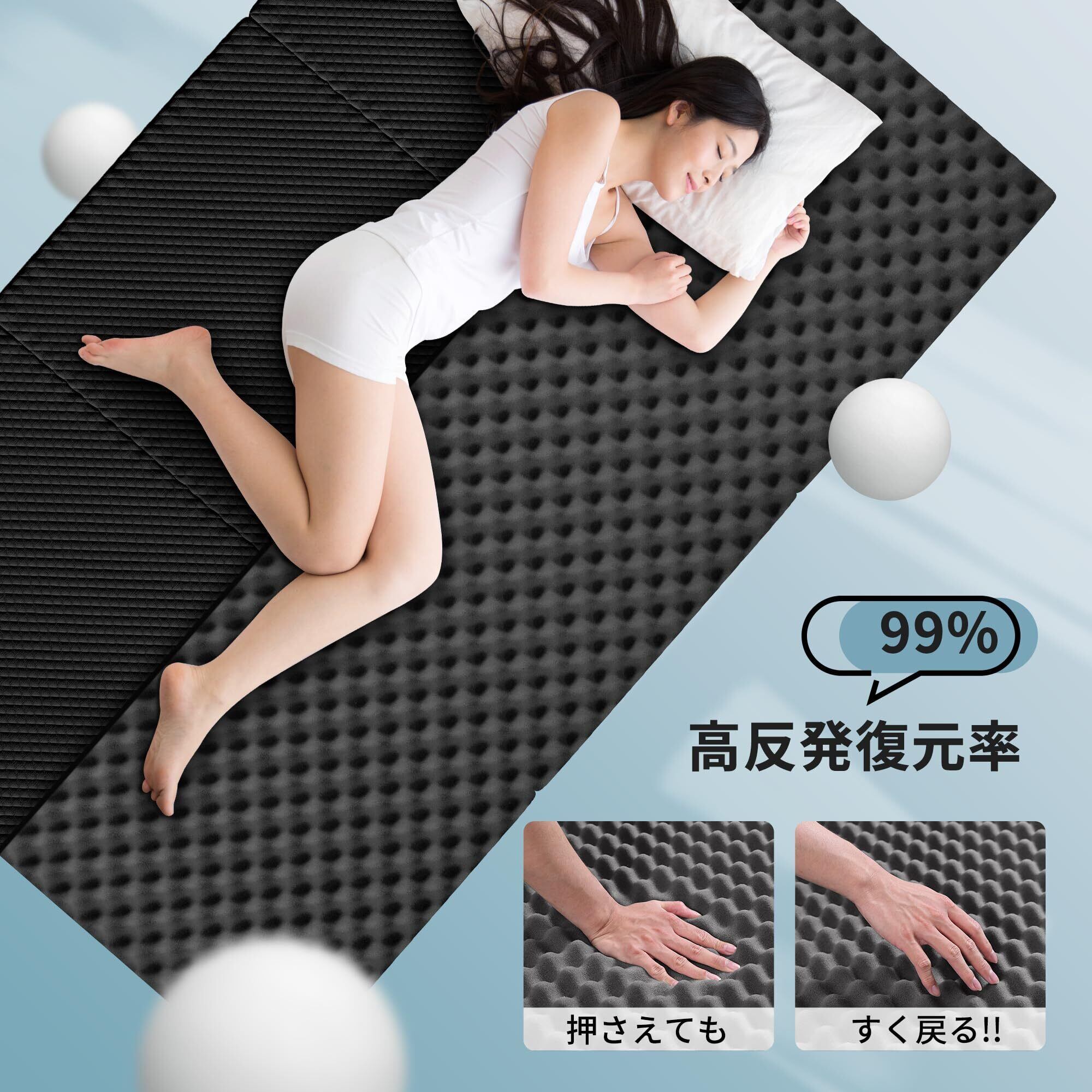 【収納便利×幅広い用途】軽量で持ち運び便利、収納スペースが小さい、薄型の三つ折りマットレスは、リビングルーム、オフィス、ホテルなど、さまざまな場所で使用できます。軽量性により、いつでもどこでも利用できます。収納も楽々!