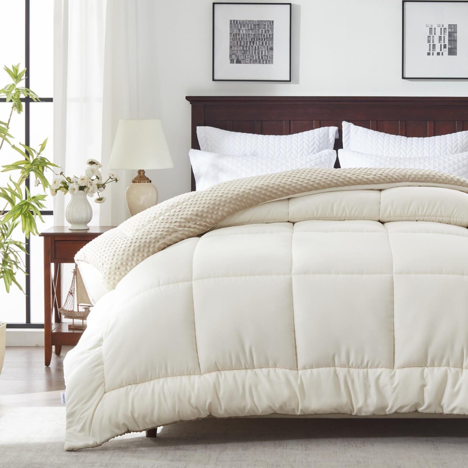 【リバーシブルデザインで2つの肌触り】A面は暖かい5Dミンキードットフランネル、B面はピーチスキン生地(軽い起毛)。A面はしっかり保温し、寒い季節に最適。B面は桃のように優しく、まるで雲に包まれるような心地よさがあります。温度調節ができるので、冬の寒さでも快適に過ごせます。