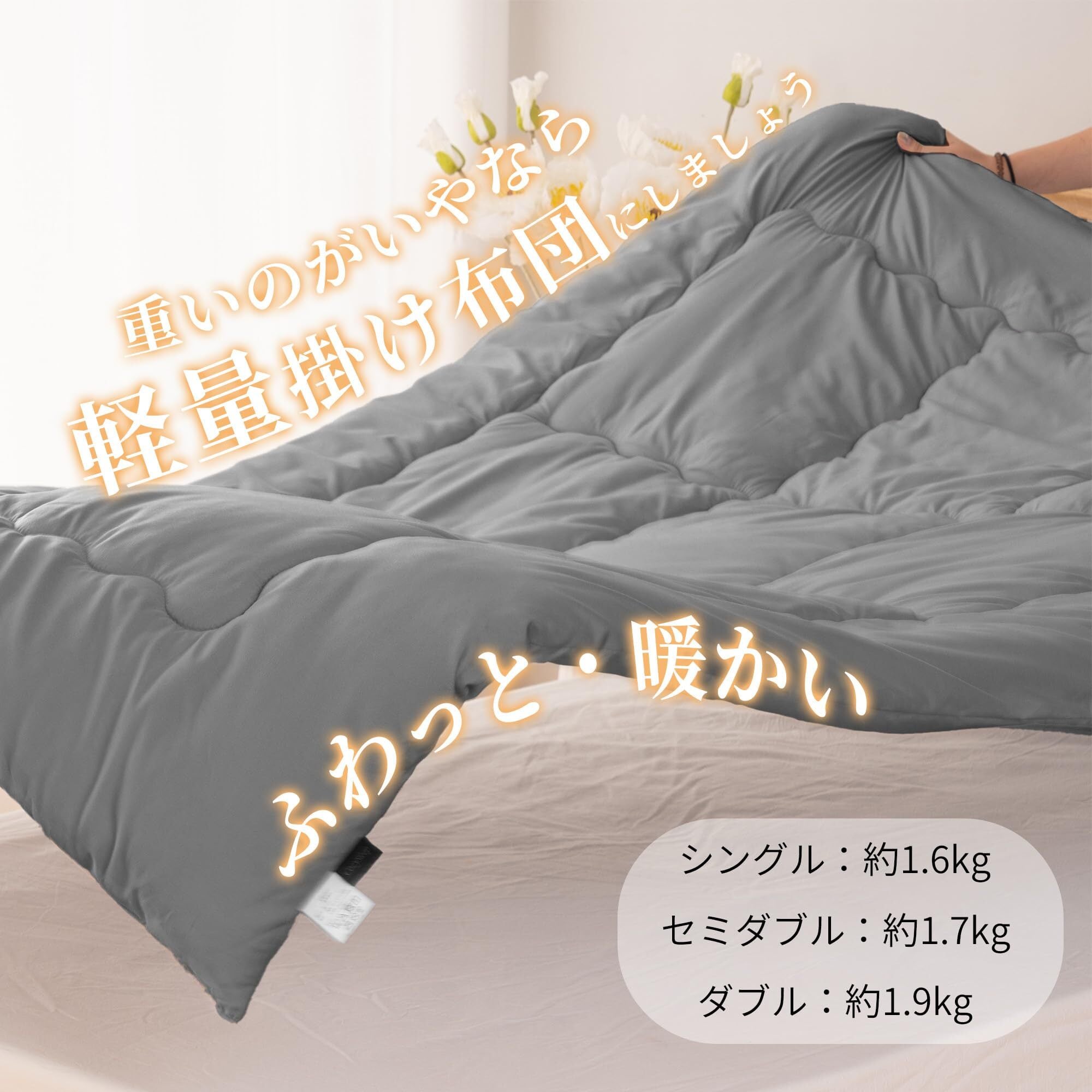 【在庫処分】CozySleep 掛け布団 セミダブル 秋冬ふとん 【軽量 暖かい 重すぎない】【Ag+銀イオン抗菌素材】【SEK衛生認証】洗える 抗菌防臭 防ダニ 吸水速乾 柔らかな肌触り 体にフィット かけ布団 ピーチスキン加工 約1.7KG 無地 170x210cm ダークグレー