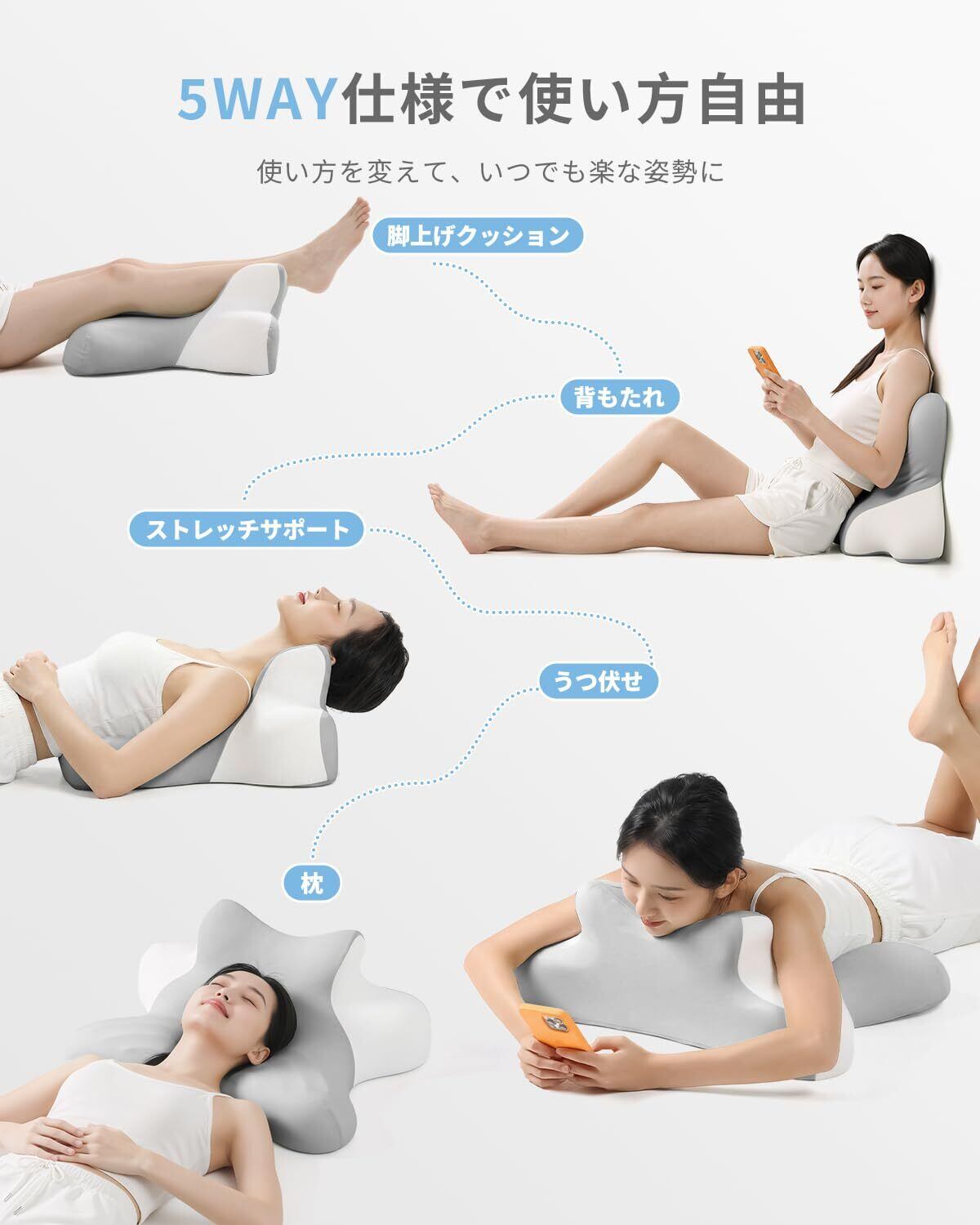 【7WAY多機能設計|枕を超えた万能クッション】この一つで、うつ伏せ 枕・背もたれ・うつ伏せ クッション・睡眠用まくら・姿勢サポート枕・高さ調整枕・脚上げクッションとして使用可能。姿勢やシーンに合わせて形を変え、上半身から脚までをやさしく支える、まさに“変幻自在”の多機能設計です。ベッドの上だけでなく、ソファ、床、在宅ワーク中のチェア、リラックスタイムの定位置としても大活躍。「今日はスマホ用」「今日はストレッチ」「今日はしっかり休む」——その日の気分や体調に合わせて使い分けられるから、枕という枠を完全に超え、毎日の姿勢と休息を支える相棒のような存在に。気づけば、家の中で一番手放せないクッションになっているはずです。