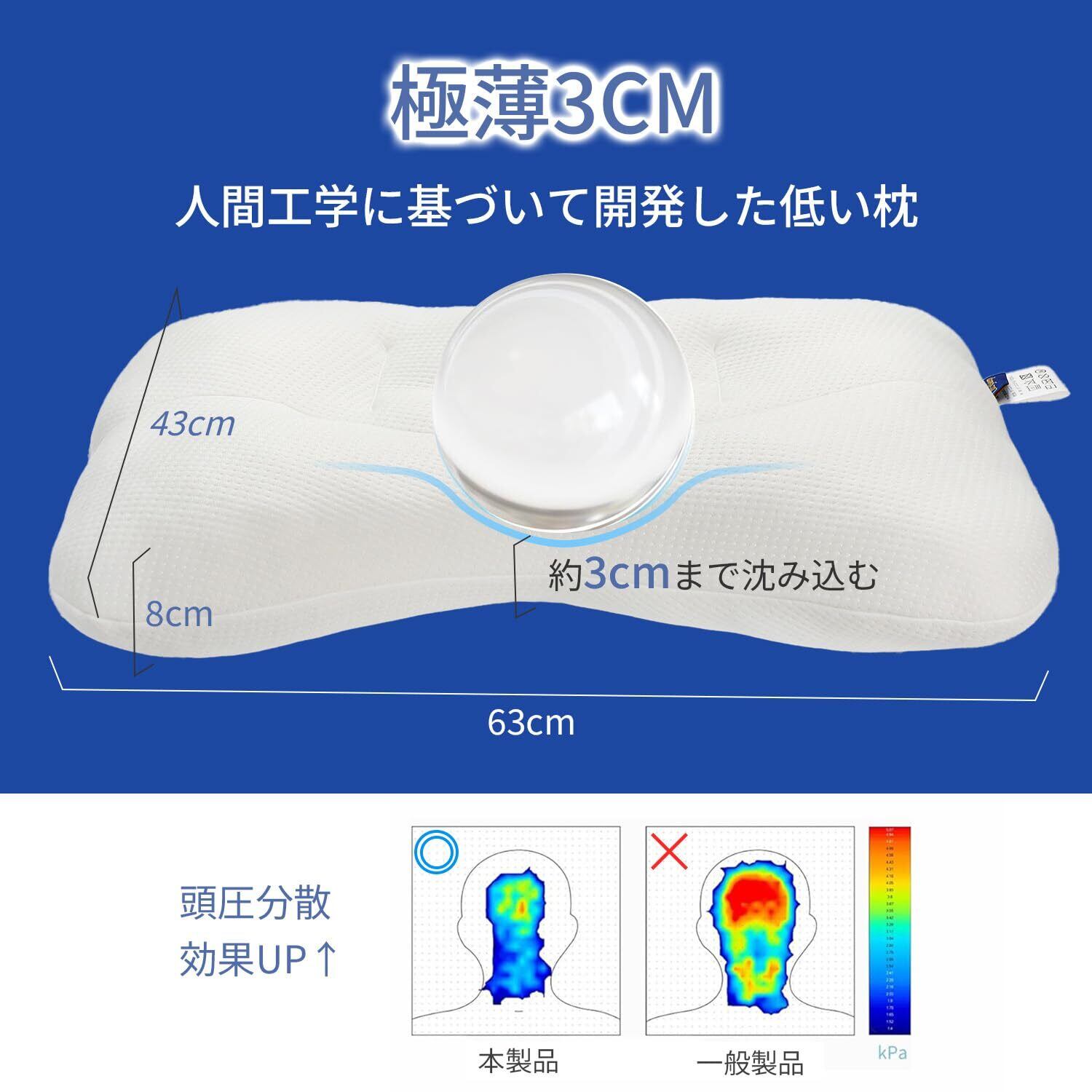 CozySleep 枕 低反発 まくら 低め 3cm 低い枕 子ども枕 【高さ調整可能 & 立体分区構造】 わた枕 柔らかい 首が痛くならない 安眠枕 快眠枕 学生枕 来客用 寝返り 横向き寝 仰向け寝 うつ伏せ寝 体圧分散 大きい 首や肩の負担を減らす 洗える 通気性 43x63cm (高さ調整 低め3cm)