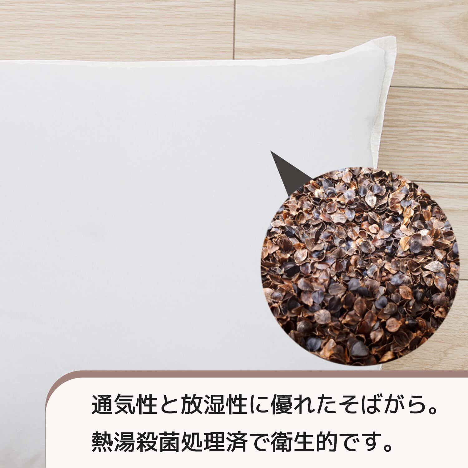 【殺菌加工で衛生的】中身のそばがらは消毒剤などの薬品を使わずに天然の熱湯殺菌処理を行い一気に熱風乾燥を行っているので、虫がよりつきにくく衛生的です。さらに殺菌処理により臭いの心配もありません。