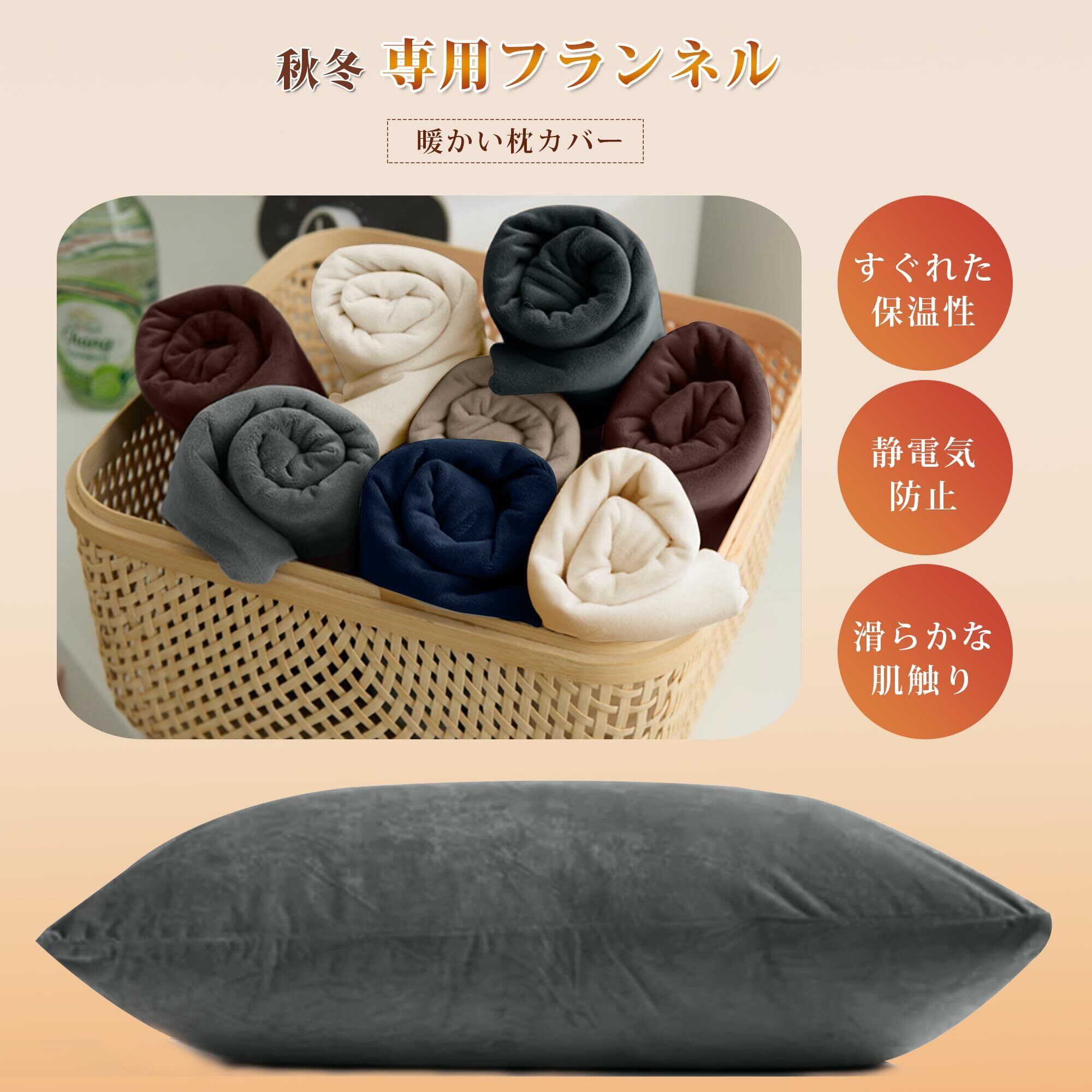 AYO 枕カバー 冬用 フランネル 43×63cm 吸湿発熱で暖かい マイクロファイバー 静電気防止 ふわふわ 毛布タッチ ふわふわ 封筒式 枕パッド 洗える 1枚 グレー