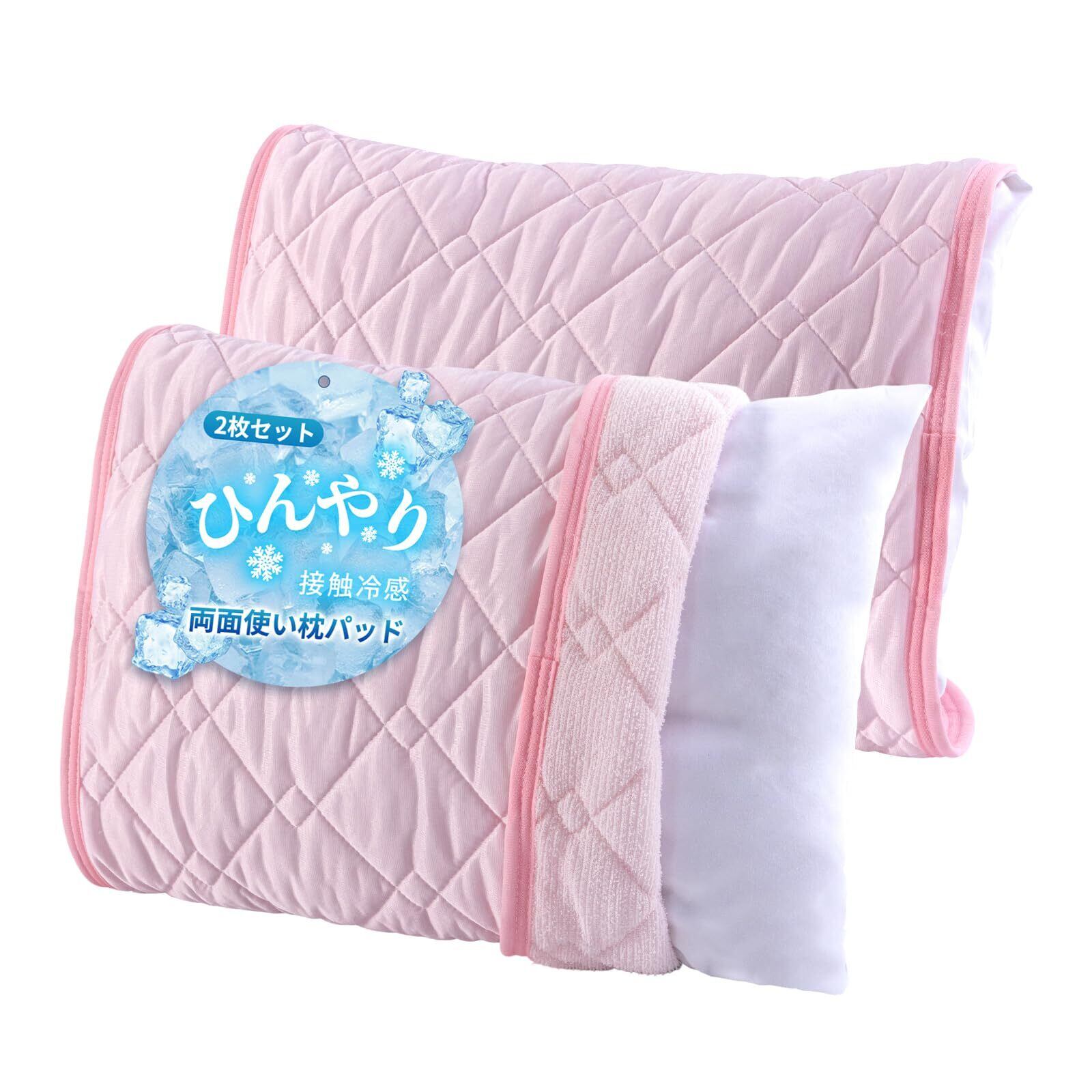 超冷感リバーシブル枕パッド 2枚セット Q-MAX 0.52 帝人マイティトップII ECO採用|通気・吸湿速乾・抗菌防臭・機洗対応|オールシーズン快眠 50×60cm ピンク