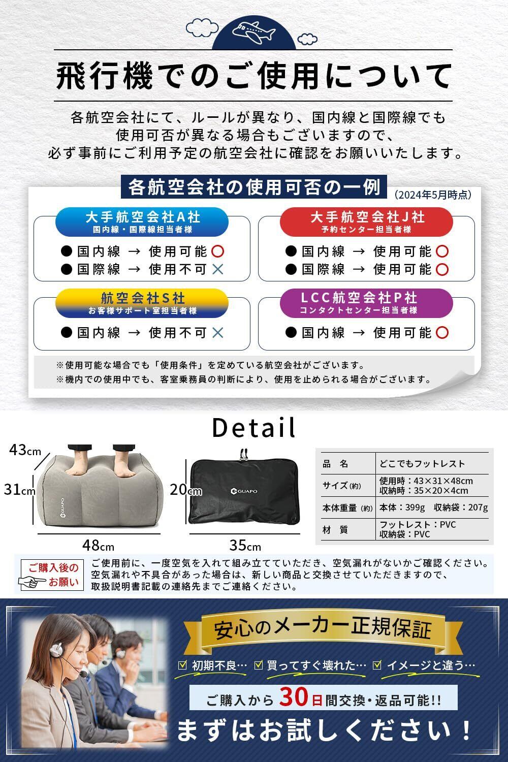 【特価商品】【グッドデザイン賞 受賞ブランド GUAPO】 フットレスト 飛行機 【2色空気口xYKKダブルファスナー改良】 足置き 足枕 旅行 便利グッズ 車 快適グッズ どこでもフットレスト