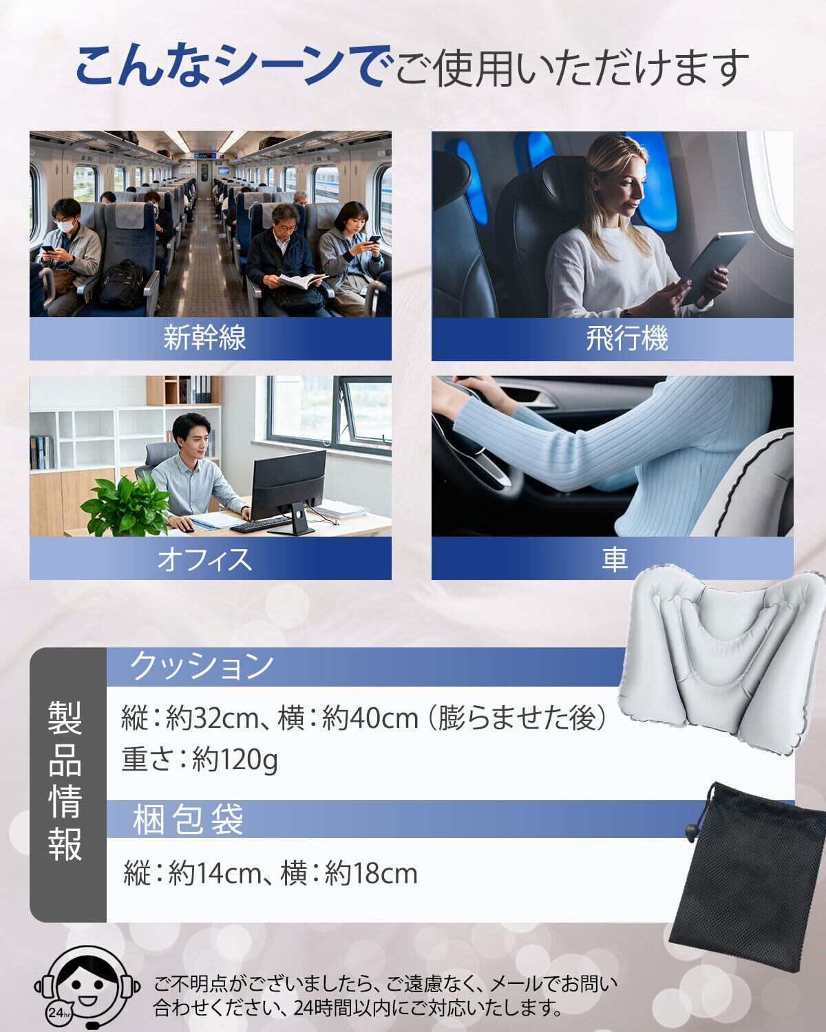 【空気量を調節して自分好みにフィット】 空気量の加減で硬さや厚みを変えられるため、腰当てクッションやリーディングピローとしても自在にカスタマイズ可能です。車腰痛対策クッションとしてのサポート力を高めたいときはしっかり膨らませ、背中クッションや軽めの腰まくらにしたいときはほどよく空気を調節して快適な使い心地を得られます。