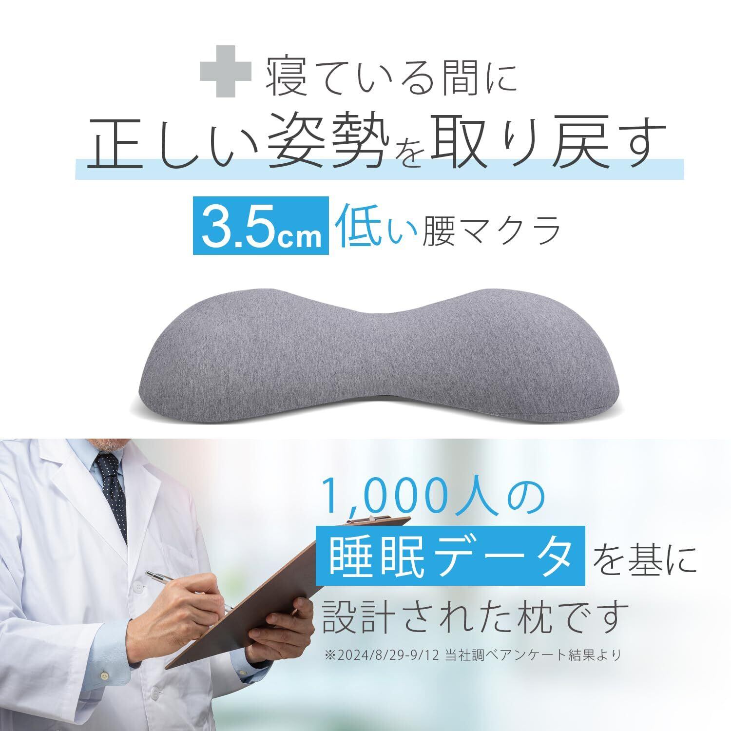 3.5cmの低い腰枕 寝ている間に正しい姿勢を取り戻す1日3時間以上座って作業する方用 腰マクラ 腰まくら 腰クッション 睡眠 就寝中 背もたれ 猫背 コットン