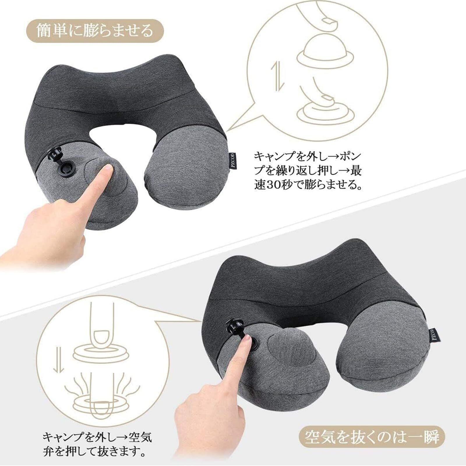 ネックピロー 飛行機 携帯枕 U型 エアーピロー プレス式膨らませる 収納袋 自宅 バス オフィス