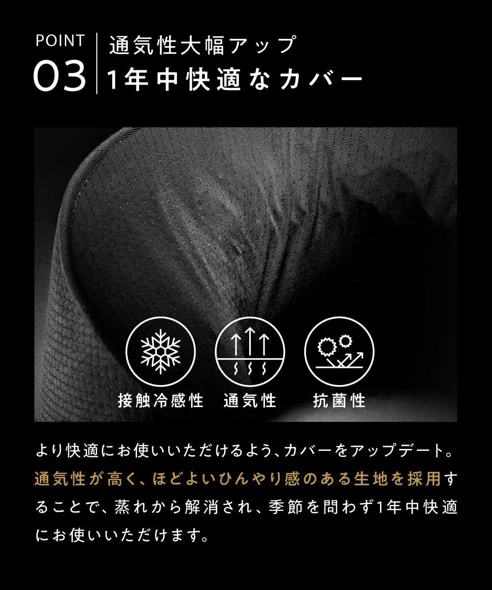 【なめらかな肌触りのカバー】ベルベッド生地のカバーは、首元にしっかりフィットし、心地よい肌触り。