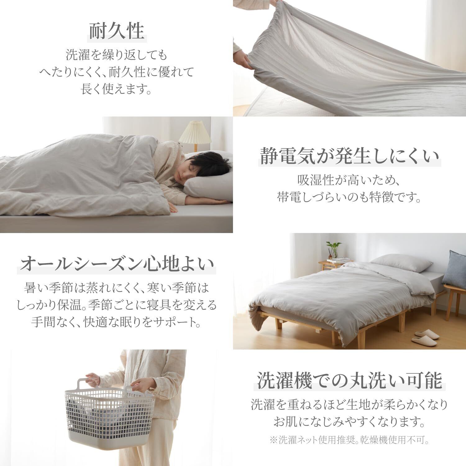 布団カバーセット 寝具カバーセット 洋式ベッド・和式布団兼用 掛け布団カバー ボックスシーツ 枕カバー 洗いざらし 水洗い加工 ピーチスキン加工 やわらかい肌触り 速乾 丸洗いOK オールシーズン (シングル・3点セット・ライトグレー)