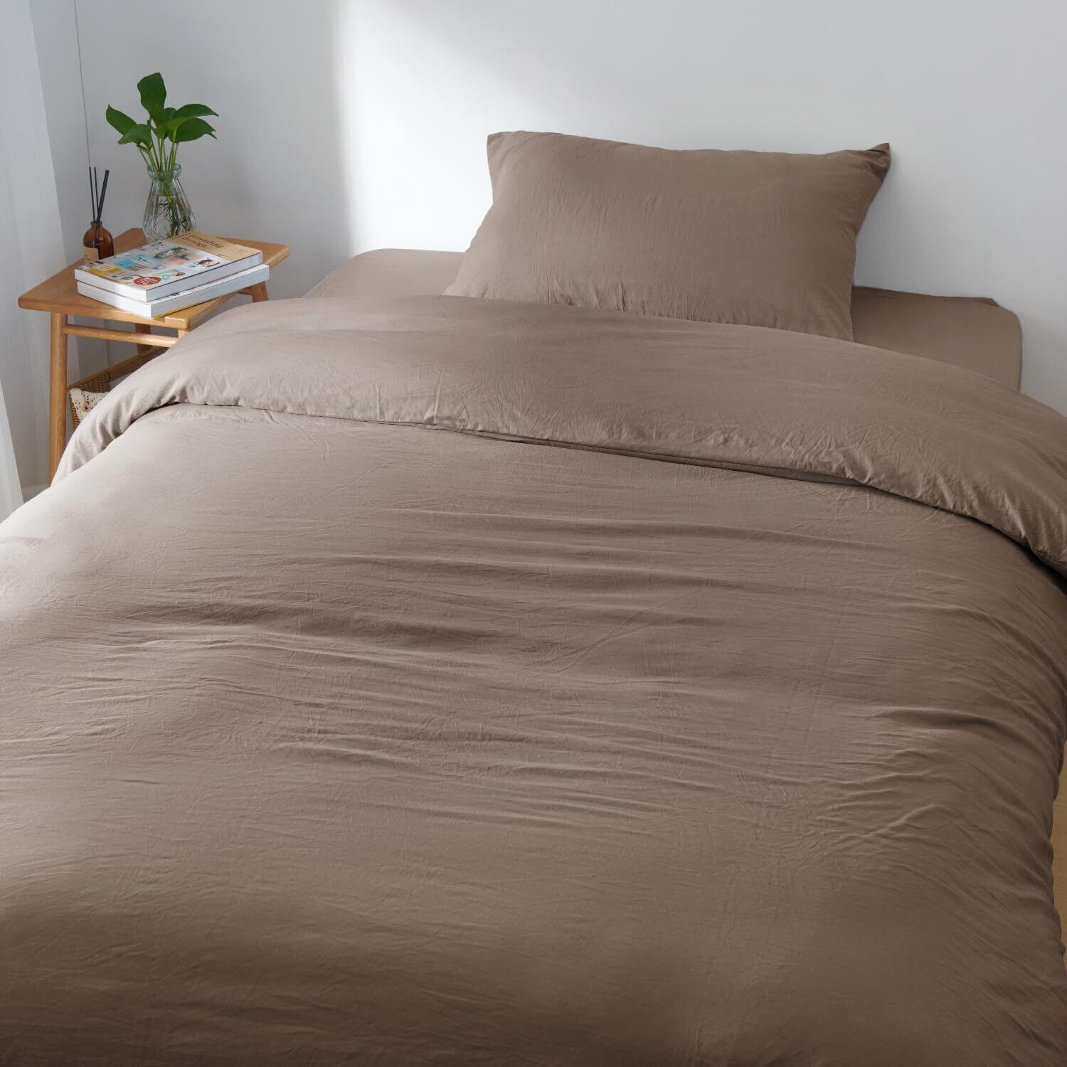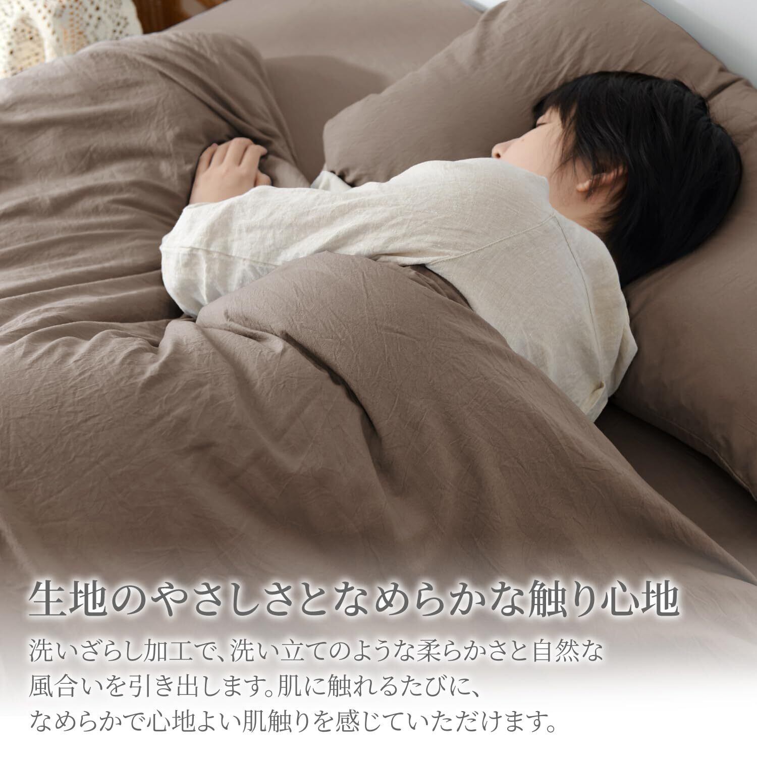 掛け布団カバー セミダブル 洗いざらし 水洗い加工 ピーチスキン加工 柔らかい しっとり 肌触り 速乾 通気 吸汗 無地 着脱簡単 洗える ベッド・マットレス・敷布団対応 オールシーズン 布団カバー 単品売り(セミダブル・170×210cm・グレージュ)