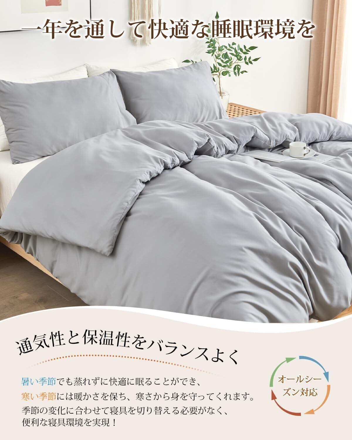 【在庫処分】HEVUMYI 掛け布団カバー シングル オールシーズン 吸水速乾 布団カバー ダブルファスナー 8箇所紐付き 掛ふとんカバー 丸洗いOK ピーチスキン加工 長く使える摩擦耐久性(シングル・150X210cm ライトグレー)