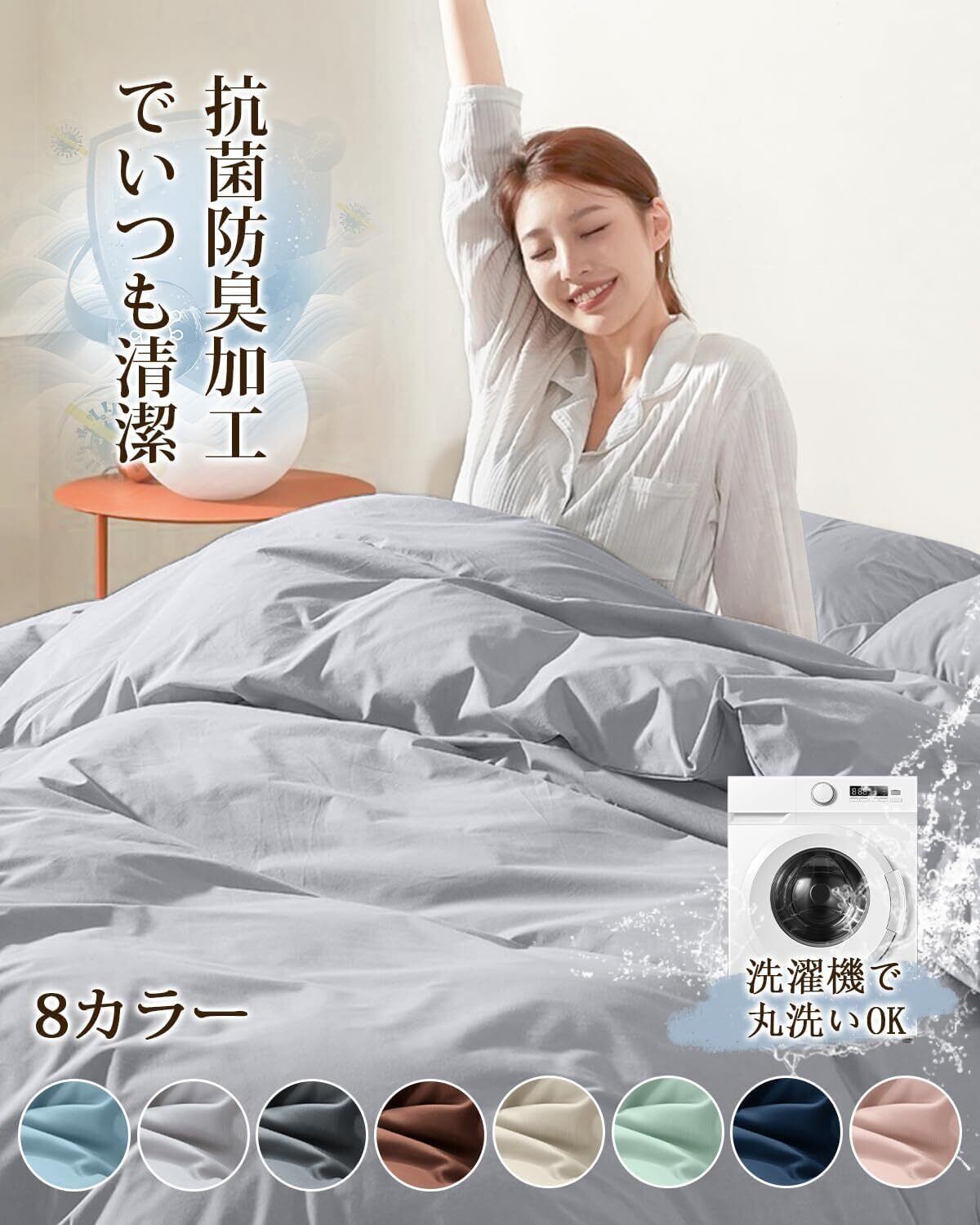 【仕様】掛け布団カバー サイズ:シングル(150X210cm)片側に210cm全開ファスナー使用 8か所の紐を付き 8種類のナチュラルな配色を用意しております。
