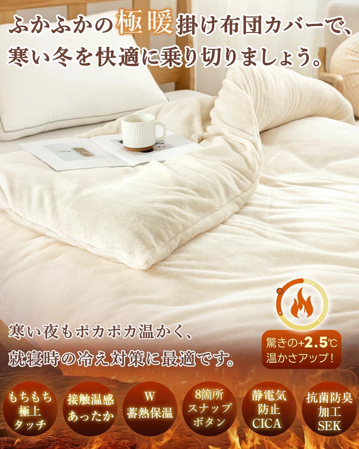 掛け布団カバー セミダブル冬 あったか フランネル 掛けふとんカバー 極細マイクロファイバー 布団カバー 毛布カバー 吸湿発熱 ふわふわ 蓄熱保温 接触温感 毛布にもなる 抗菌防臭 全開ファスナ 8ヶ所ボタン 簡単着脱 秋冬用 防寒対策 単品売り 洗える 静電気防止 Housecover(セミダブル・170×210cm アイボリー)