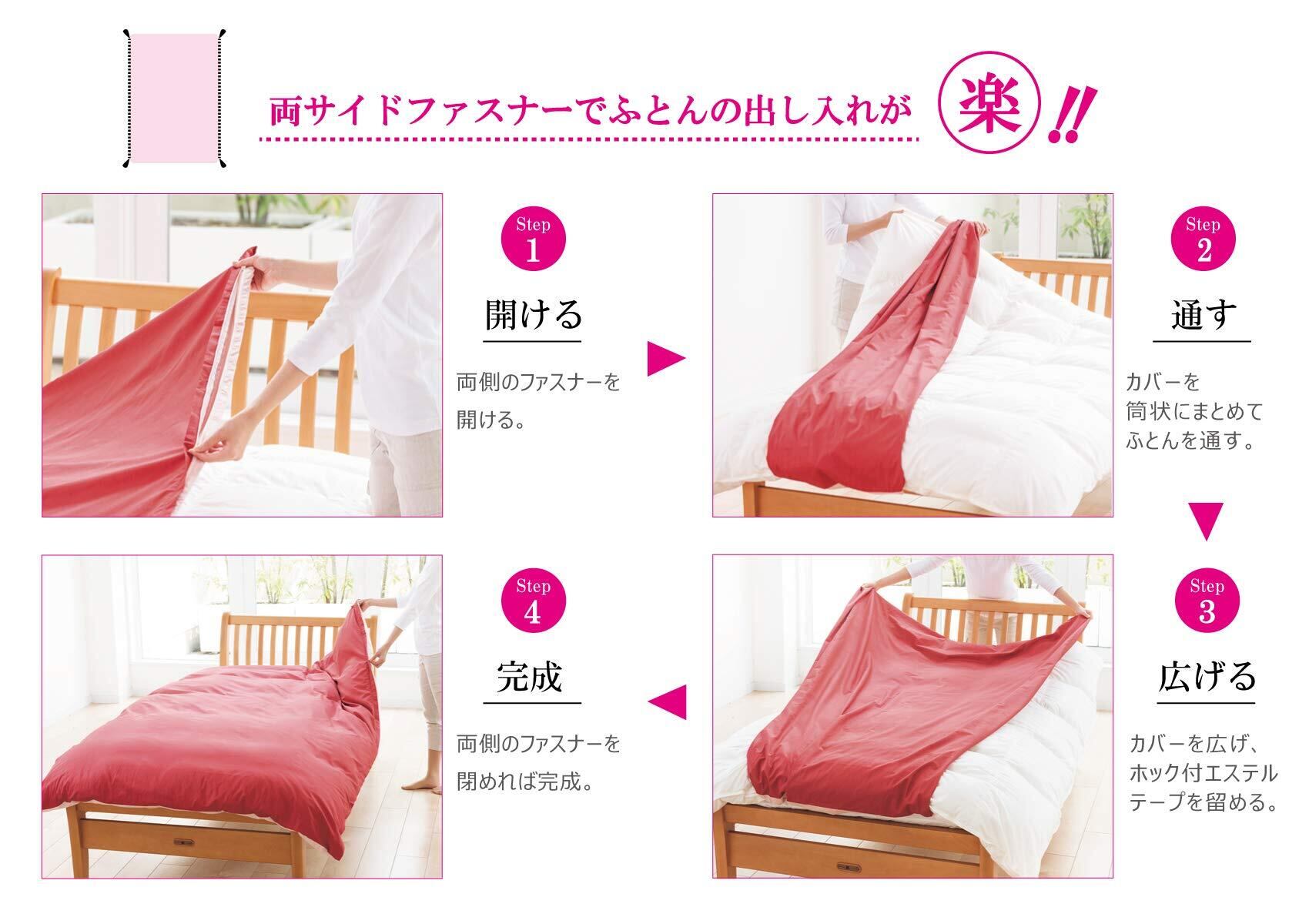 ●カバーの両サイドにファスナー付き。端から端まで開いて布団の出し入れも簡単・便利。