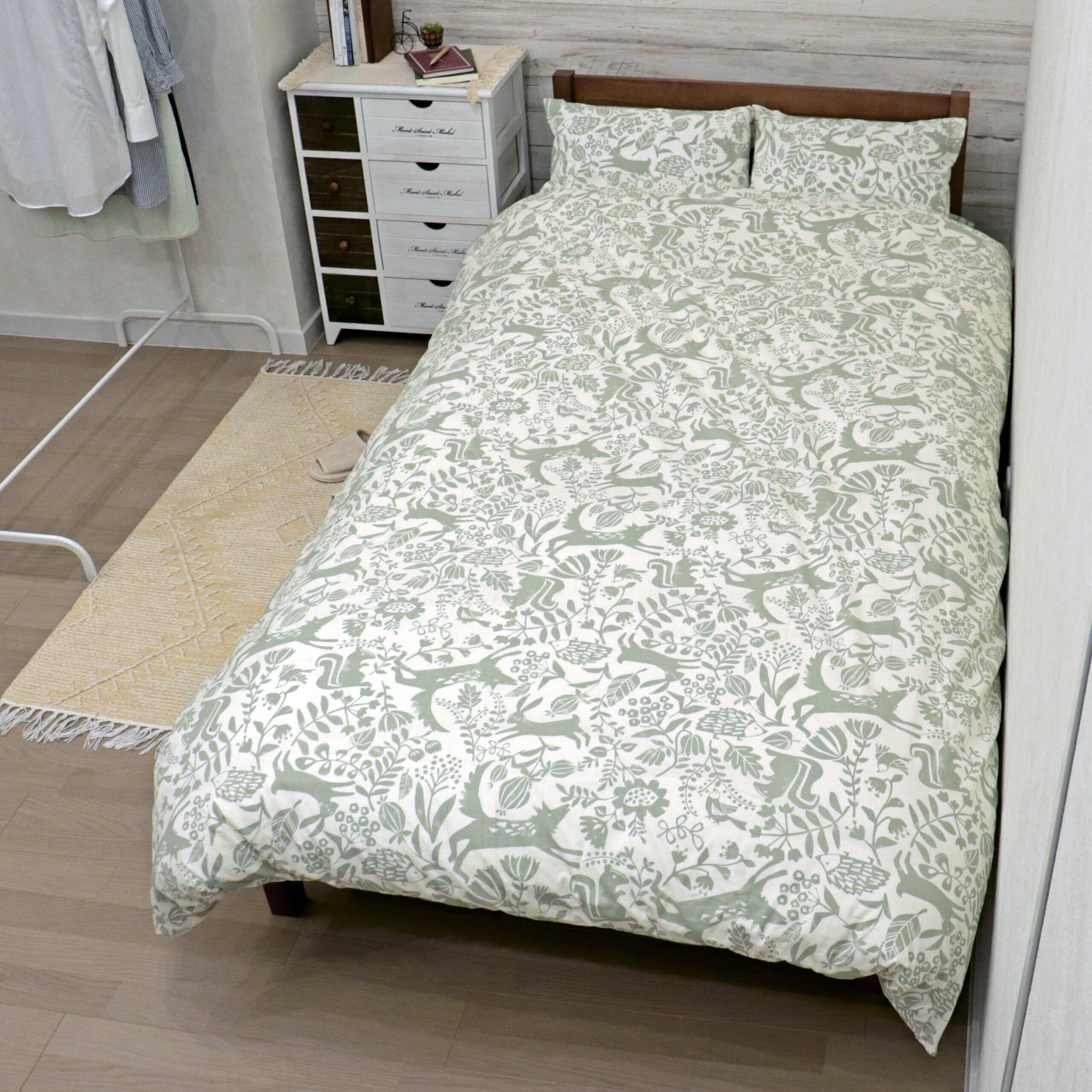 CAMEL PALMS 日本製 綿100% ガーゼ 掛布団カバー シングル 150×210cm 着脱簡単テープ付スナップ 森の動物たちA