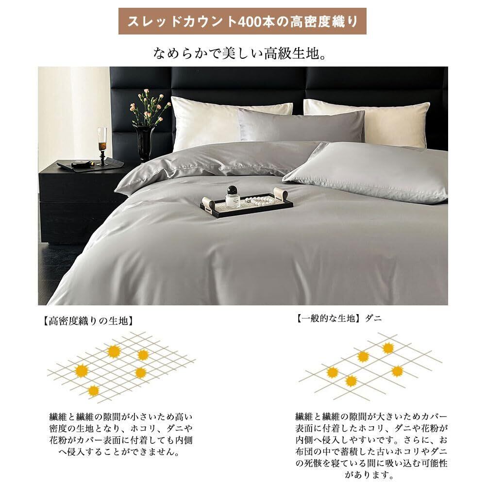 【特価商品】掛け布団カバー シングル 綿100% サテン織り 100番手双糸 超長綿 400本高密度生地 ホテル仕様 防ダニ 掛けふとんカバー ふとんカバー 布団カバー シルクのような肌触り 北欧 滑らか 柔らかい (150x210cm, グレー)