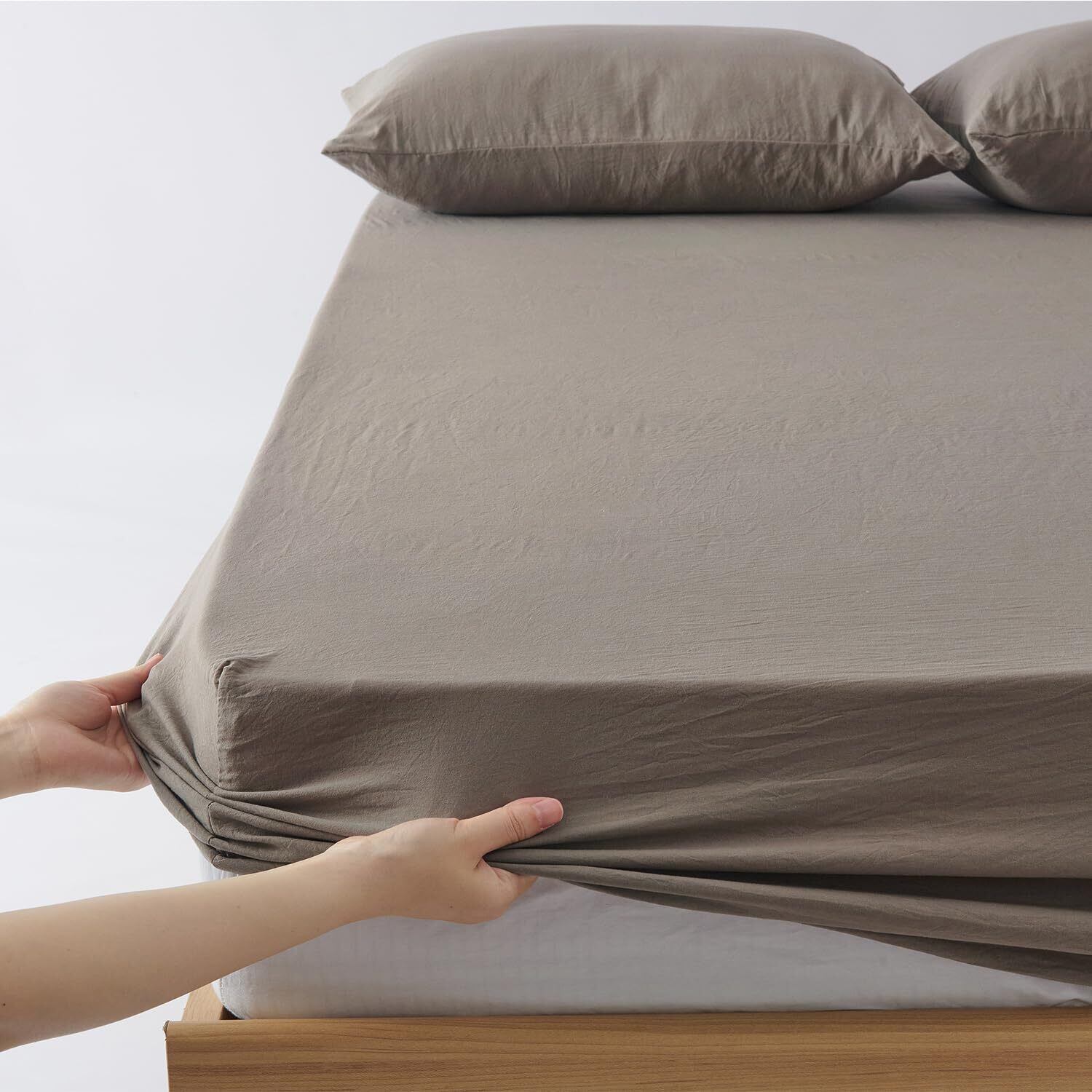 クモリ(Kumori) ボックスシーツ シングル 100X200cm 洗いざらし 柔らかい 肌触り 無地 耐久シワ加工 洗える 吸湿速乾 着脱簡単 オールシーズン ベッド/マットレス/敷き布団対応 ベッドシーツ シーツ マットレスカバー ベッドカバー (100X200cm,モカ)