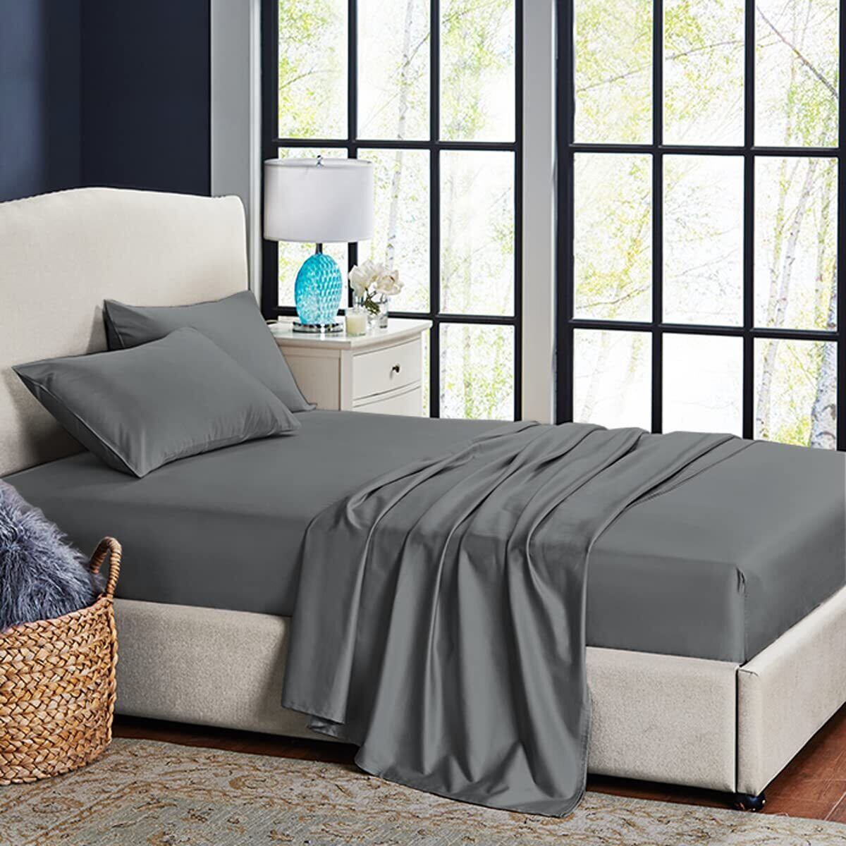 ボックスシーツ ダブル 高级綿100% ホテル品質 シーツ ベッドシーツ サテン織り 300本高密度生地 マットレスカバー ベッドカバー 防ダニ 抗菌 滑らか 柔らかい (グレー, ダブル-140×200×30cm)