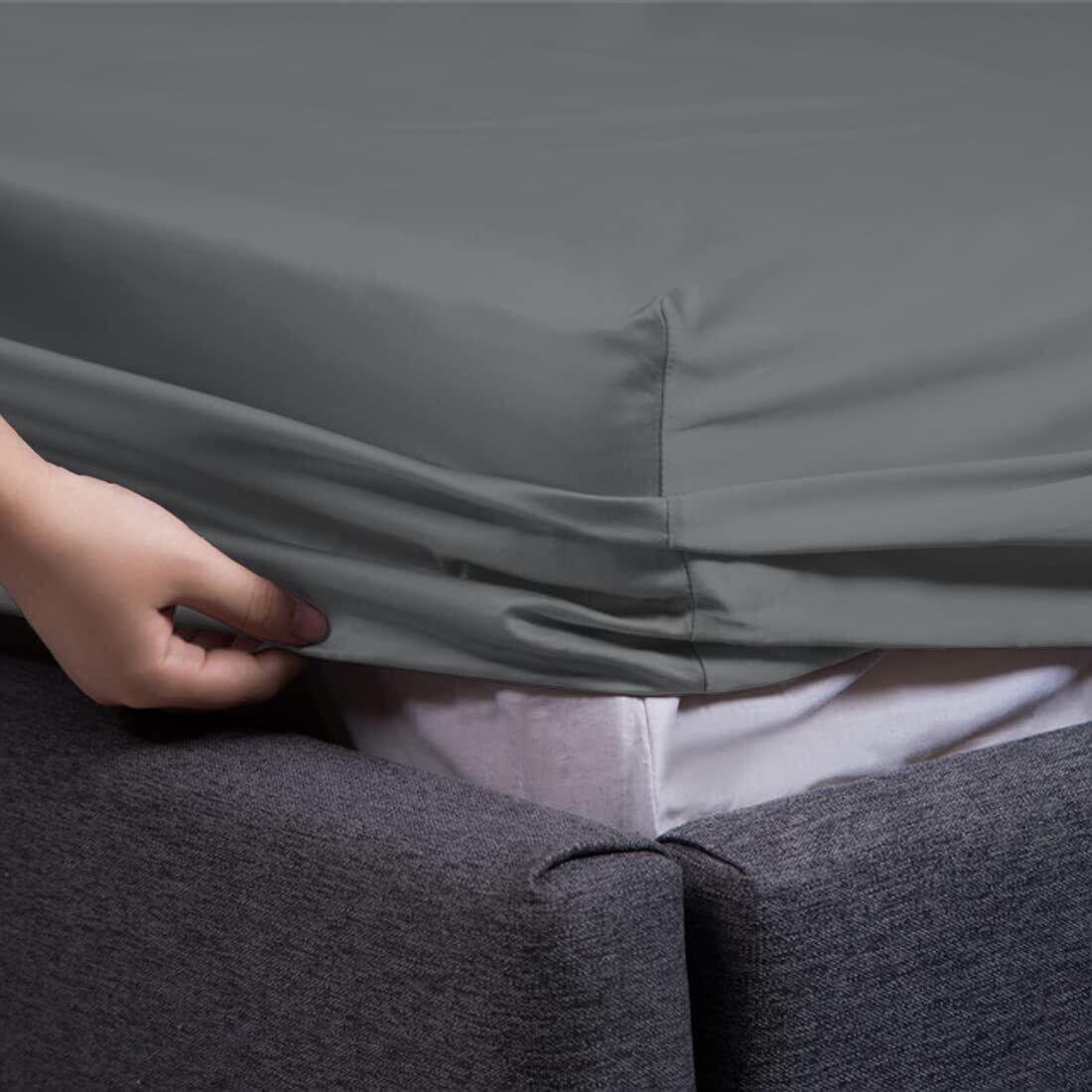 【数量限定】ボックスシーツ ダブル 高级綿100% ホテル品質 シーツ ベッドシーツ サテン織り 300本高密度生地 マットレスカバー ベッドカバー 防ダニ 抗菌 滑らか 柔らかい (グレー, ダブル-140×200×30cm)