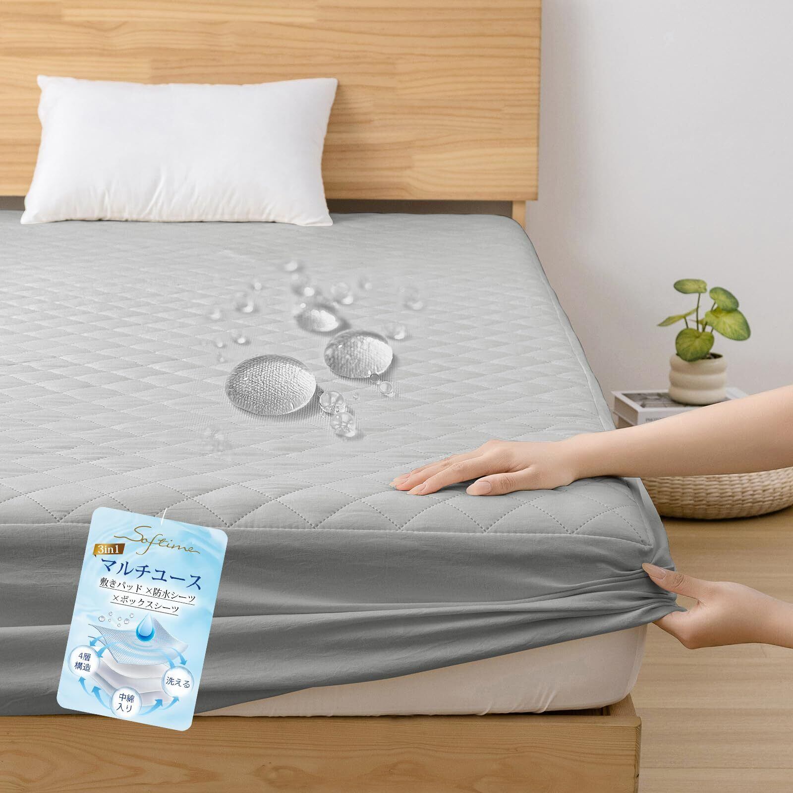 【在庫セール】Softime 防水ボックスシーツ シングル 敷きパッド パッド一体型 マットレスカバー 1枚3役 SEK認証 抗菌防臭防ダニ ベッドシーツ ベッドカバー 全周ゴム付き 着脱簡単 介護用 おねしょシーツ 洗える オールシーズン ベッドパッド 超音波キルティング 3D中空繊維 通気性 100×200×30cm・ダックグレー