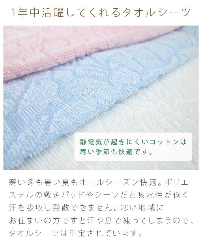 寒い冬も暑い夏もオールシーズン快適。ポリエステルの敷きパッドやシーツだと吸水性が低く、汗を吸収し発散ができないため、寒い地域にお住まいの方ですと汗や息で凍ってしまうので、タオルシーツは重宝されています。