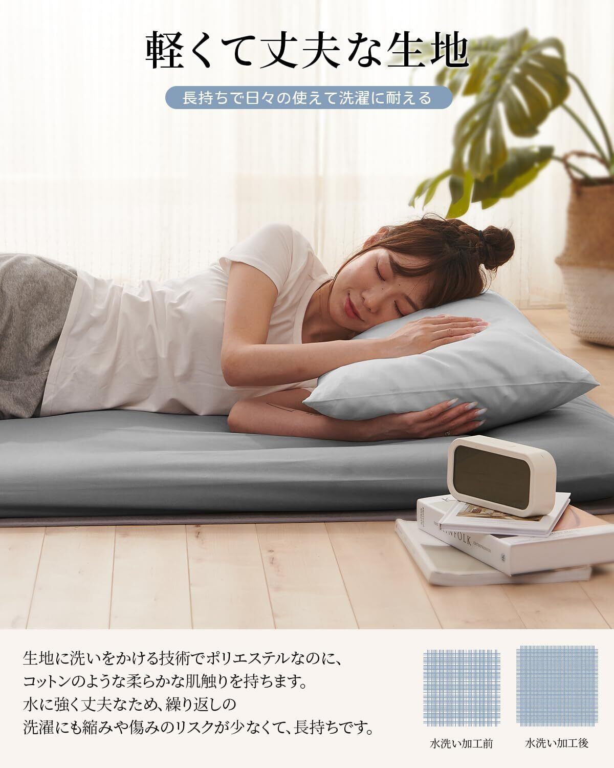 ホスール(HOSUR) 敷き布団カバー ワンタッチシーツ 洗いざらし シングル しき布団カバー 敷き布団/マットレス対応 ピーチスキン加工 柔らかい肌触り 敷き布団/マットレス対応 和式 洗える 吸汗 薄手 乾きやすい おしゃれ 通気性 強化ゴム付き (105X215cm・グレー)