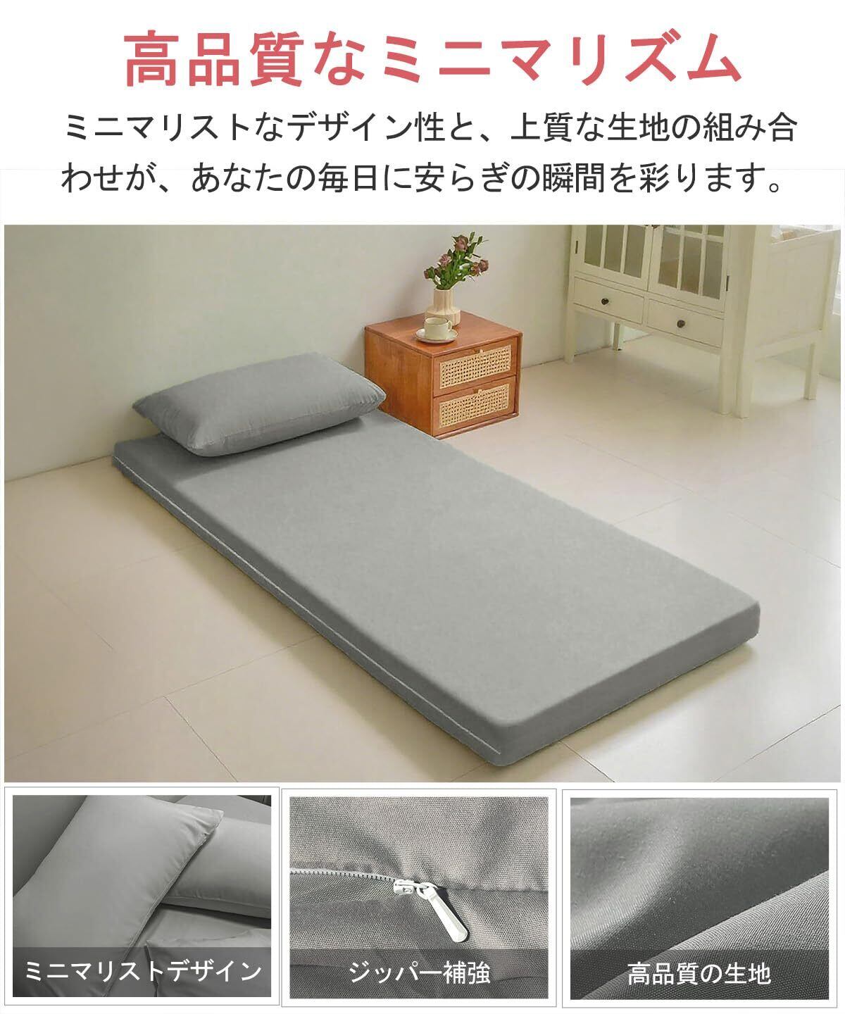 敷き布団カバー シングル 敷き布団/マットレス対応 ピーチスキン加工 丸洗いOK 和式 敷きカバー 肌触り優しい 完全に保護 全開ファスナー 敷きふとんカバー 洗える オールシーズン 吸汗 速乾 敷き布団シーツ ライトグレー シングル・105×215cm