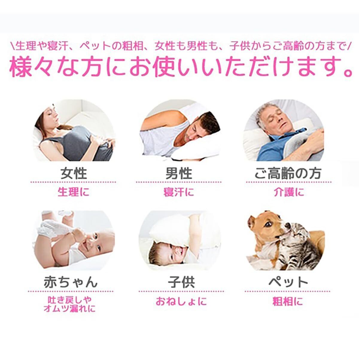 【特徴】■完全防水!寝汗はもちろん、どんな汚れも心配ありません。全ての汚れを完全遮断し、布団・マツトレスを一切汚しません。■側面も防水加工済、 横に流れても安心です。■呼吸をする防水素材。透湿性防水素材の為、蒸れも冷えもありません。又、汚れは寝具に浸透せず、乾燦した状態を保つ事が出来る為、布団やマツトレスの劣化が遅ぐ、ニオイの発生や、カビ予防にもなります。