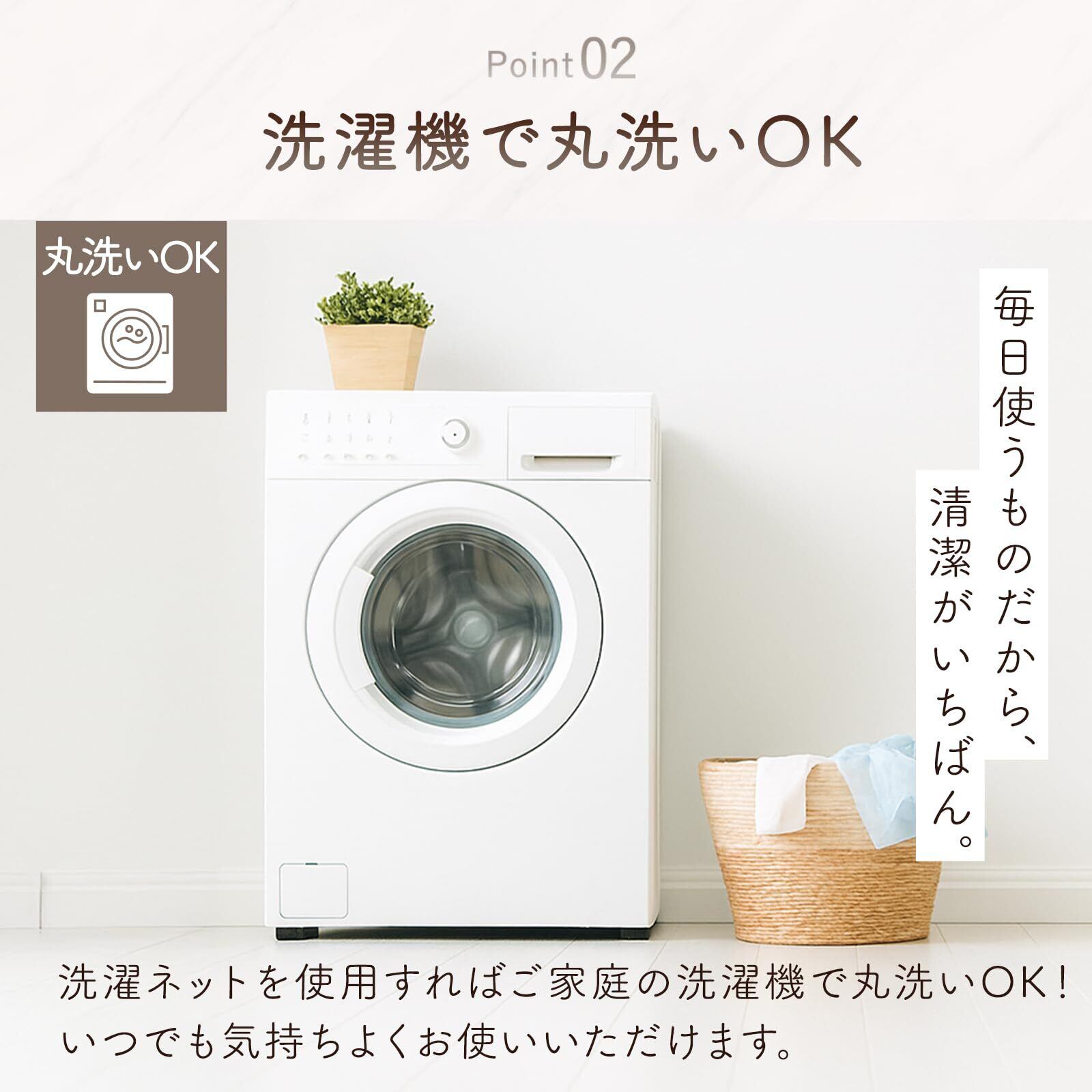 【洗濯機で丸洗い・速乾タイプ】洗濯機で丸洗いできるウォッシャブル仕様。速乾性にも優れており、汗をかきやすい季節も清潔にお使いいただけます。
