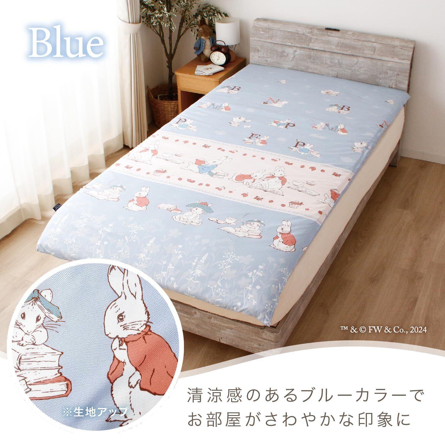 メリーナイト ピーターラビット(TM) 敷布団カバー 「リトルブック」 ベビーブルー 約105×215cm シングルロング 出し入れ簡単 片側210cmファスナー 敷きふとんサイズ 100×210cm用 ポリエステル ピーチスキン加工 滑らかな肌触り速乾 シワになりにくい お手入れ簡単 カジュアル 大人可愛い プリント柄 アプリイ・ダプリイ™ 赤りすナトキン™ 洗える PR132009-76