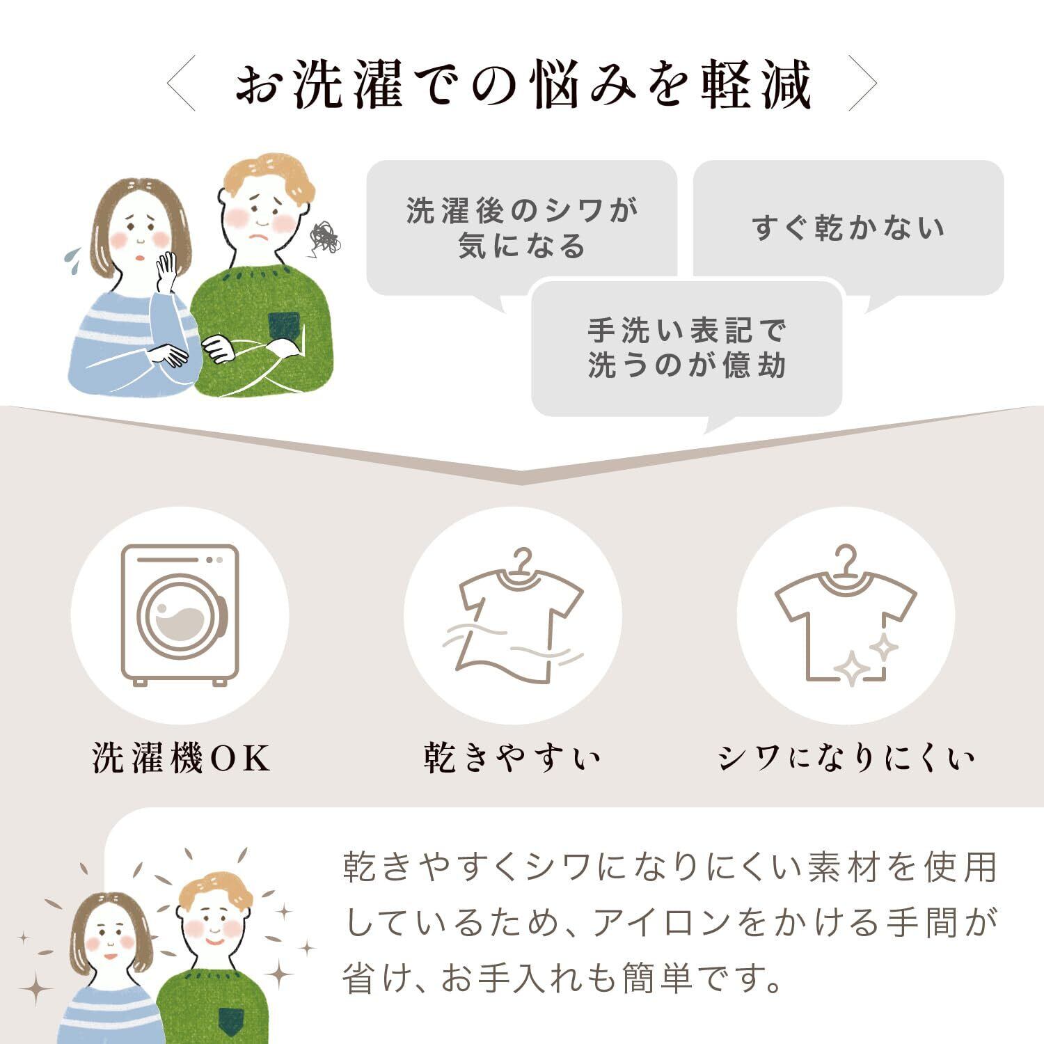 天然素材と比べて乾きやすく洗濯後もシワになりにくくお手入れも簡単です。