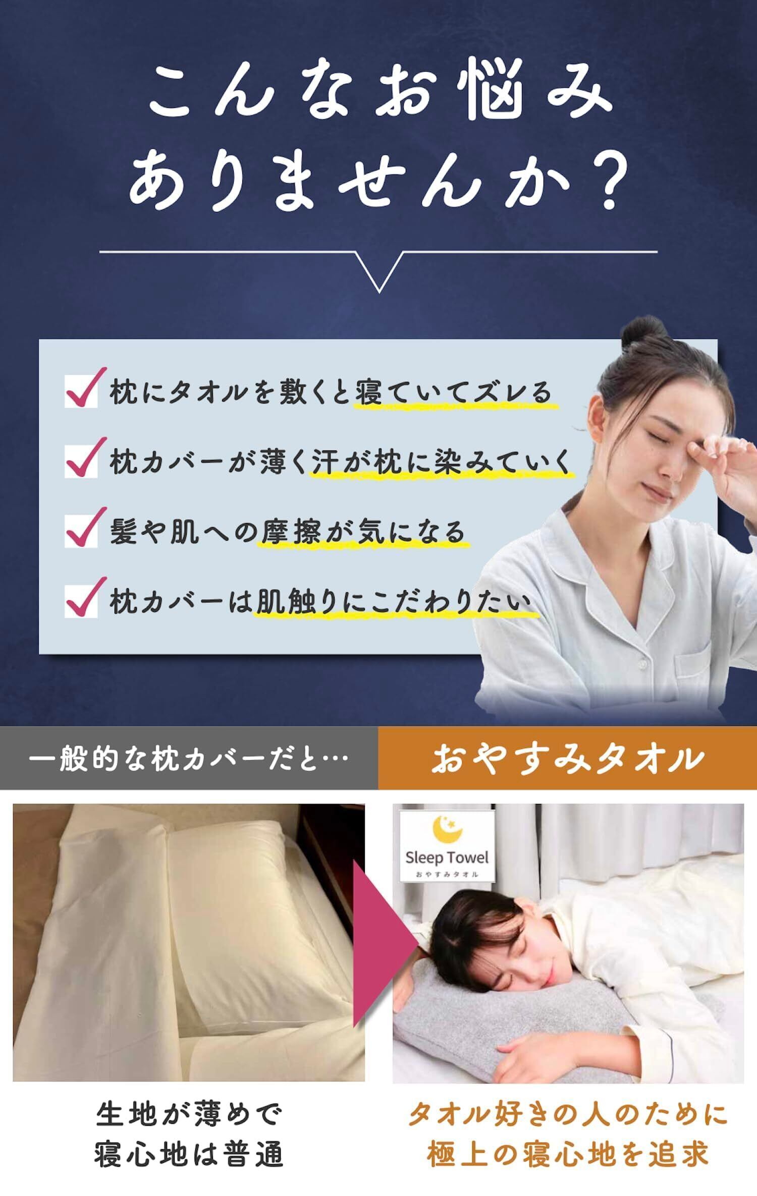 【極上の寝心地】タオルで寝る人に極上の寝心地を追求した『睡眠専用おやすみタオル枕カバー』。繊維の間にたっぷりの空気を含み、ふんわりと包み込まれるような心地良さ。