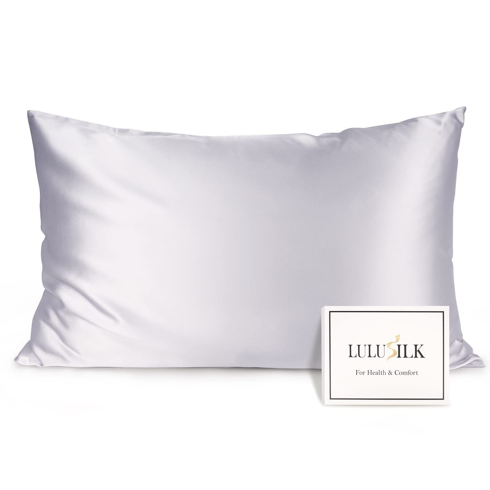 【特価商品】LULUSILK 枕カバー 43x90cm ピローケース 封筒式 洗える ポリエステル100% 光沢 美髪 肌に優しい 四季適応 新年ギフト 贈り物 1枚 シルバー