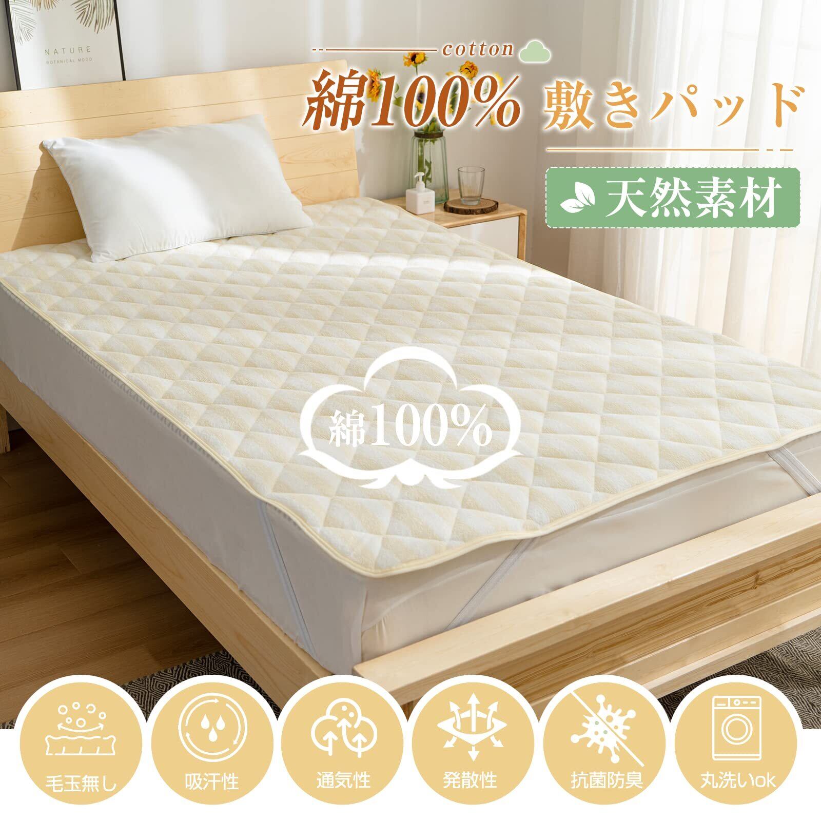 【オールシーズンで使える】:耐久性も高い綿100%表生地の敷きパッドは、汗の季節も冷える季節もオールシーズン活躍してくれる敷きパッドです。速乾性がよくて、吸汗通気、お手入れ簡単です。お客様を満足させるように努めていきますので、敷きパッドは不具合がある場合、商品自体の問題がある場合(初期不良など)は、にご連絡いただければ迅速に対応いたします。