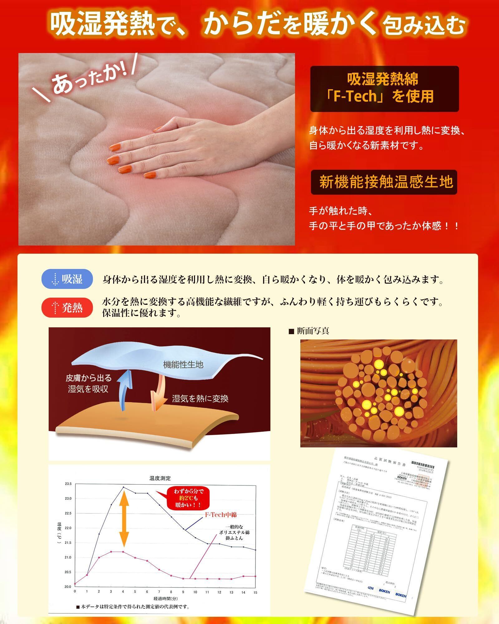素材構成 中空綿, 吸湿発熱綿「F-Tech」, 高密度プレミアムフランネル