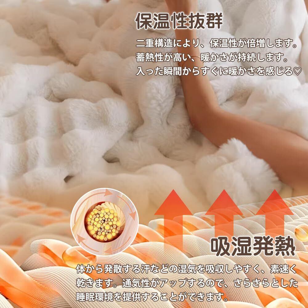【冬の必須な毛布】うさぎの毛皮のように柔らかくふわふわブランケット、ふわっと軽くやわらかい肌触り、柔らい感触を体に感じます。触り心地も最高なふわふわ生地、圧迫感もない、膝や体にかけてふわふわで気持ちいいです。吸湿発熱わたが、寝ている間の汗を吸ってくれるためムレにくく、保温性にも優れている、快適に安眠できます。