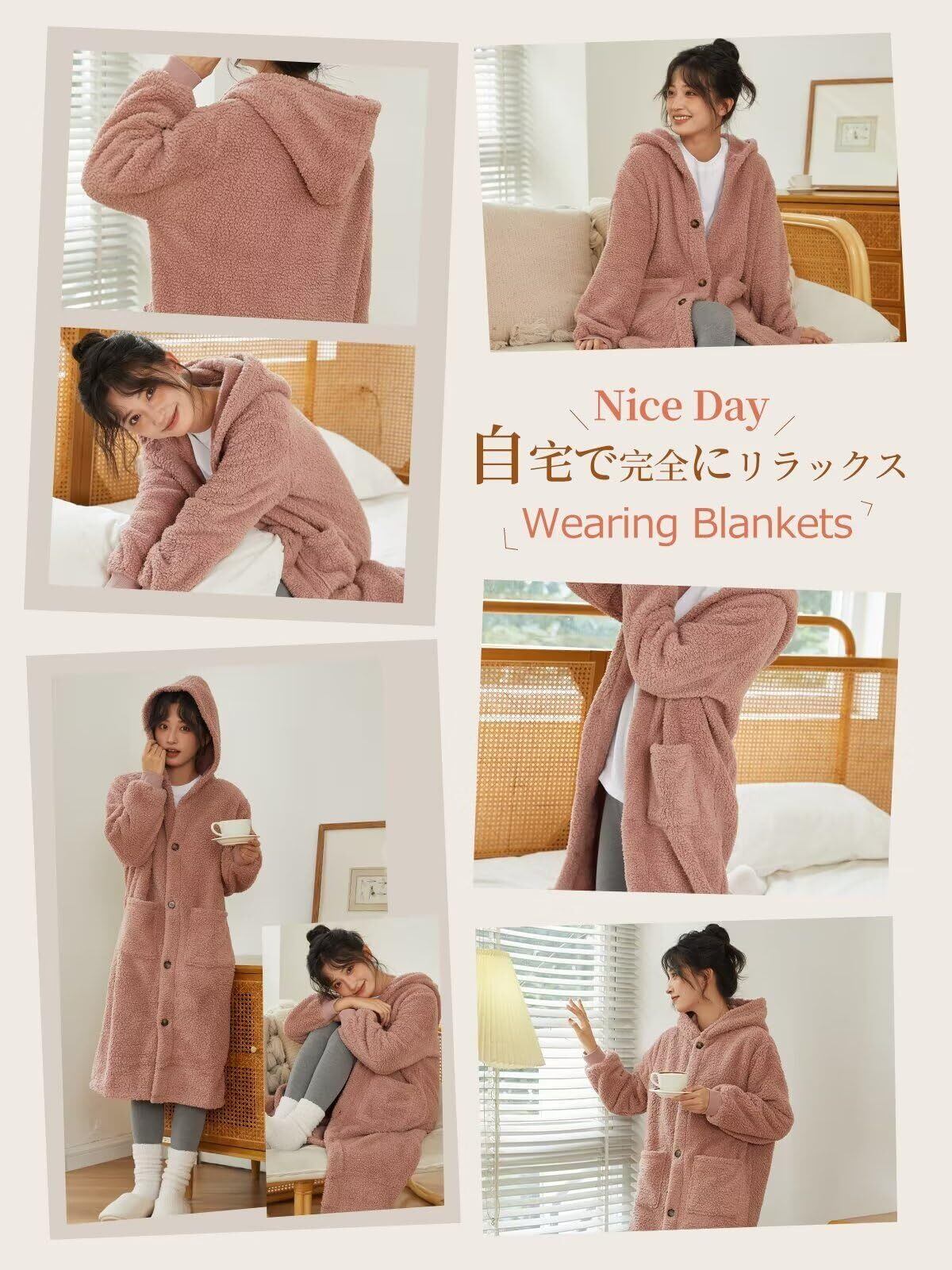 【2022最新】[WULFUL] 着る毛布 ルームウェア レディース メンズ 着るブランケット 部屋着 パジャマ 長袖 フード付き 無地 ビッグポケット 暖かい 春 秋 冬 柔らかい 肌に優しい ふわふわ 男女兼用 プレゼント