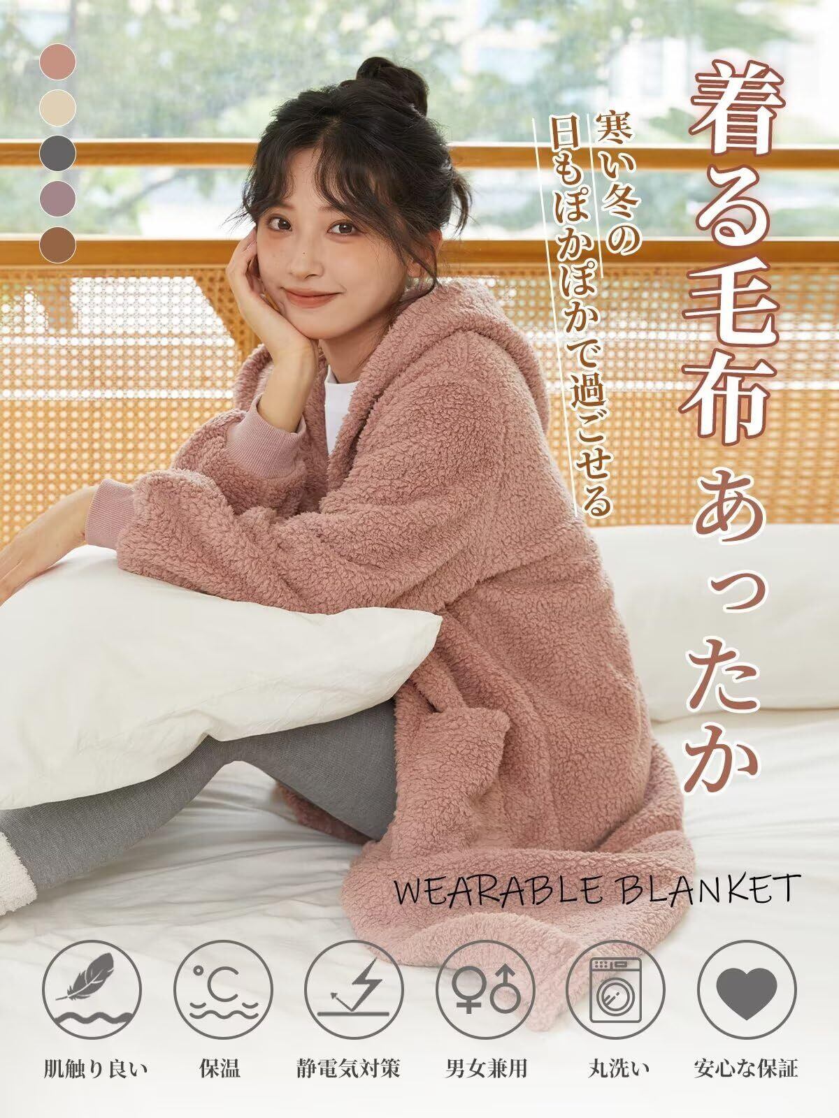 [WULFUL] 着る毛布 ルームウェア レディース メンズ 着るブランケット 部屋着 パジャマ 長袖 フード付き 無地 ビッグポケット 暖かい 春 秋 冬 柔らかい 肌に優しい ふわふわ 男女兼用 プレゼント