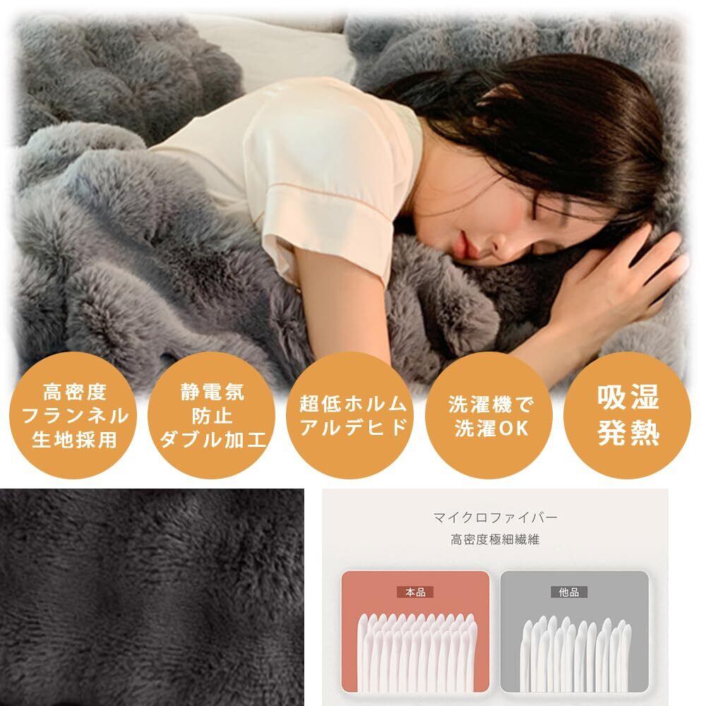 ✿【ラビットファー調二枚合わせ毛布素材:】ラビットファー調加工で、保温性良い、表裹はラビットファー調生地(表側長い繊維、内側短い繊維)を重ねている二枚合わせ毛布、表地と裹地の間に空気層ができ、温かさをしっかりキープできます。おしゃれなお部屋を演出してくれ、寒い冬でも暖かくお過ごしいただけるブランケットです。