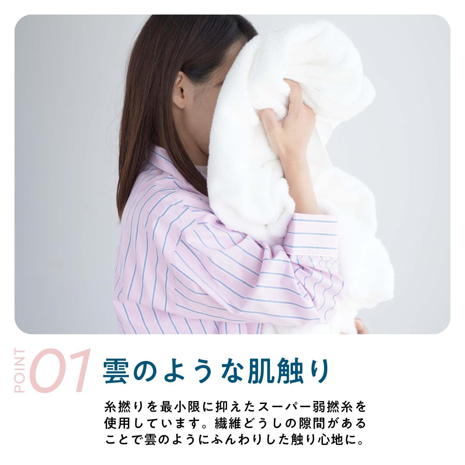【まるで雲のような触り心地】 厚手で贅沢なボリューム感と雲のようにふんわりした触り心地です。糸撚りを最小限に抑えたスーパー弱撚糸を使用し、もちもちの握り感も実現しました。綿100%素材ならではの通気性と吸湿性があるため肌にまとわりつきづらく、夏の寝苦しい夜も快適にお使いいただけます。