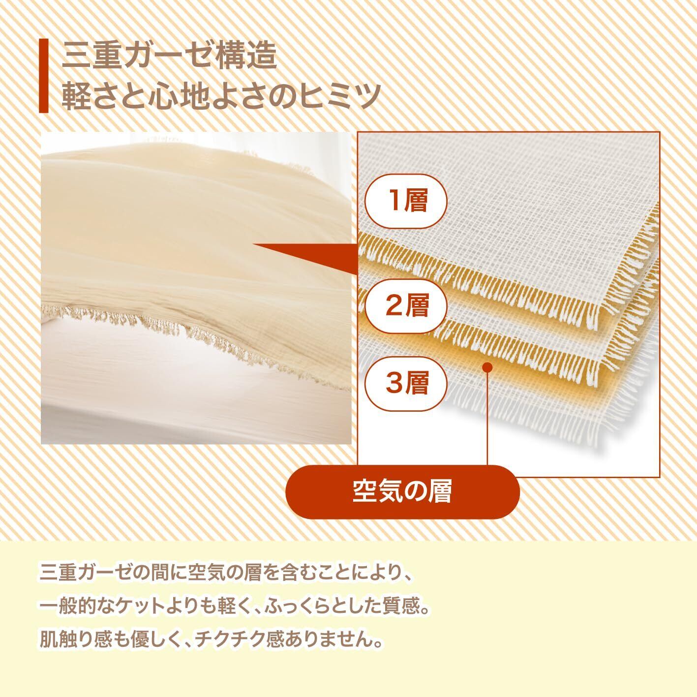 【オールシーズン使える優れもの】3重ガーゼの空気層が保温性も兼ね備え、冬は布団の中の温度と湿度を調整する布団の中掛けや寝具以外にもひざ掛けなど、夏は冷房対策など年中使える万能アイテム。冬におすすめのブランケット(ガーゼケット)でありながら、夏用のかけ布団や掛け布団の代わりとしても活躍します。